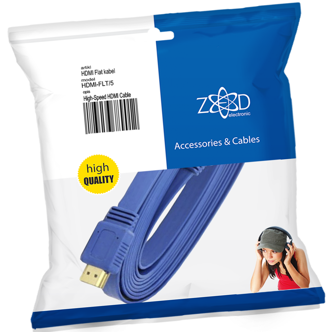 ZED electronic HDMI kabl, plosnati, 5.0 met, ver. 2.0, 3D, Ethernet - HDMI-FLT/5