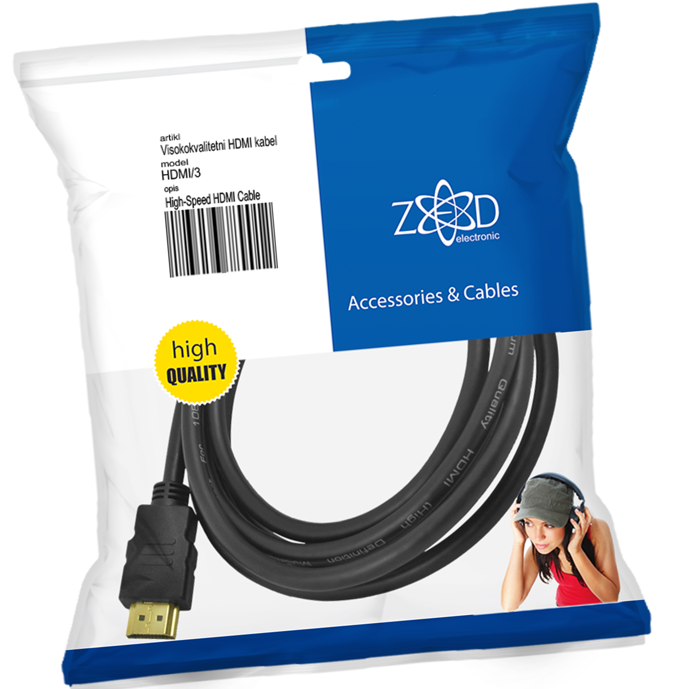 ZED electronic HDMI kabl, 3.0 met, ver. 1.4 - HDMI/3