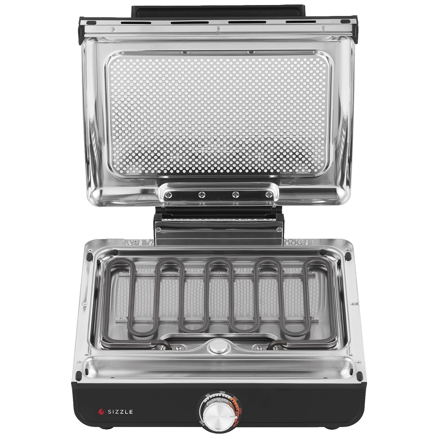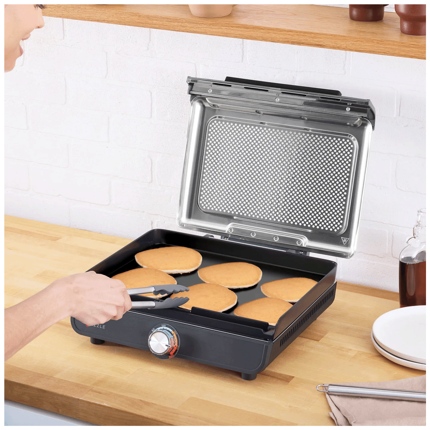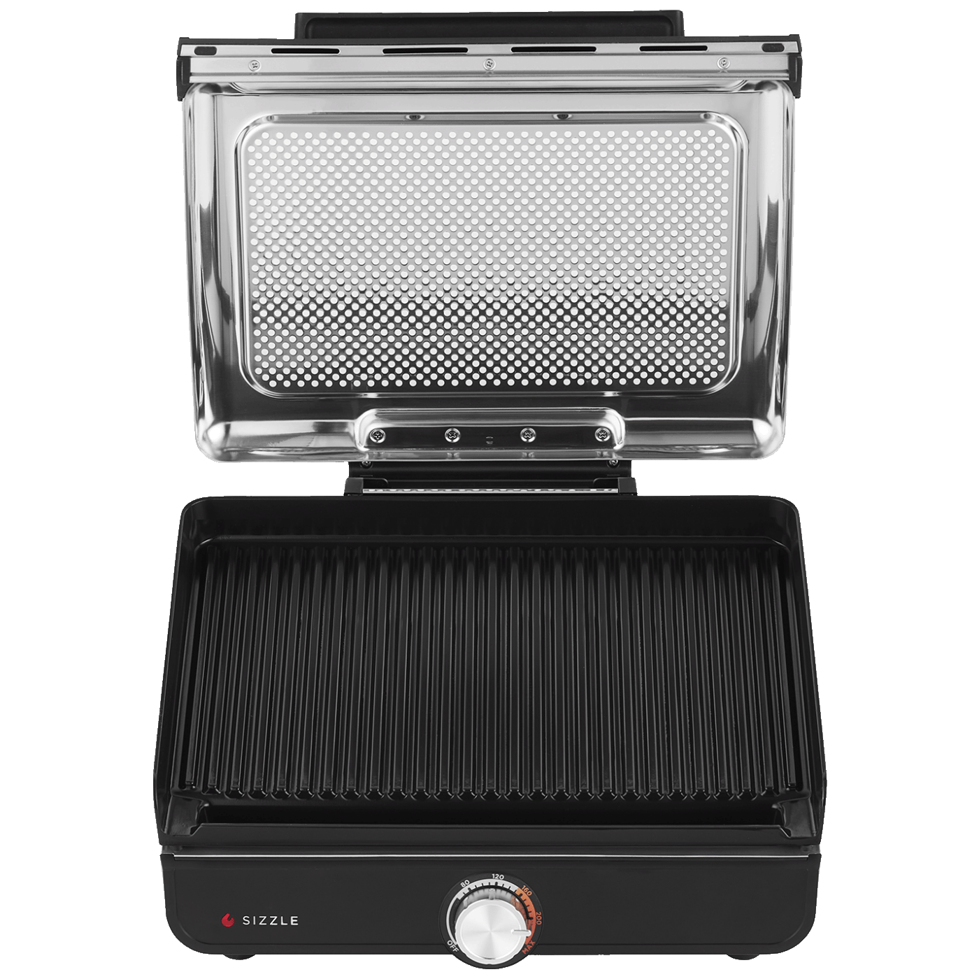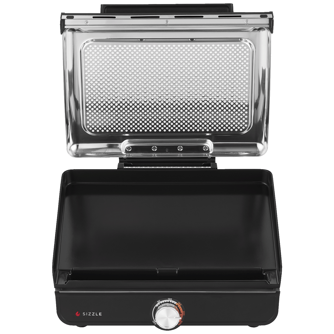 Sa zatvorenim poklopcem, hrana je koncentrirana na temperaturi za autentični okus pečenja na žaru i savršeno pečenje - idealno za kuhanje delikatne hrane ili proteina bez prekuhavanja ili za hranu koja zahtijeva okretanje, poput jaja, palačinki i prženih krumpirića. Poklopac se može skinuti - savršen za tostirane sendviče, debele odreske ili smrznute škampe. Odvojivi, perforirani poklopac sprječava prskanje i može se ukloniti radi lakšeg čišćenja kako bi se spriječilo nakupljanje masnoće.