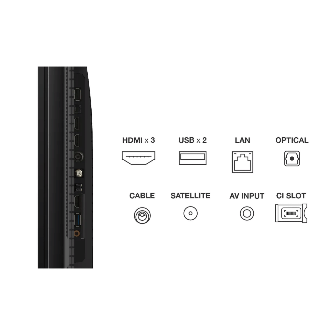 • Povezivost: HDMI x 4, USB x 2, Ethernet, Wi-Fi 5, RF ulaz, CI+ utor, Ulaz za slušalice, optički izlaz