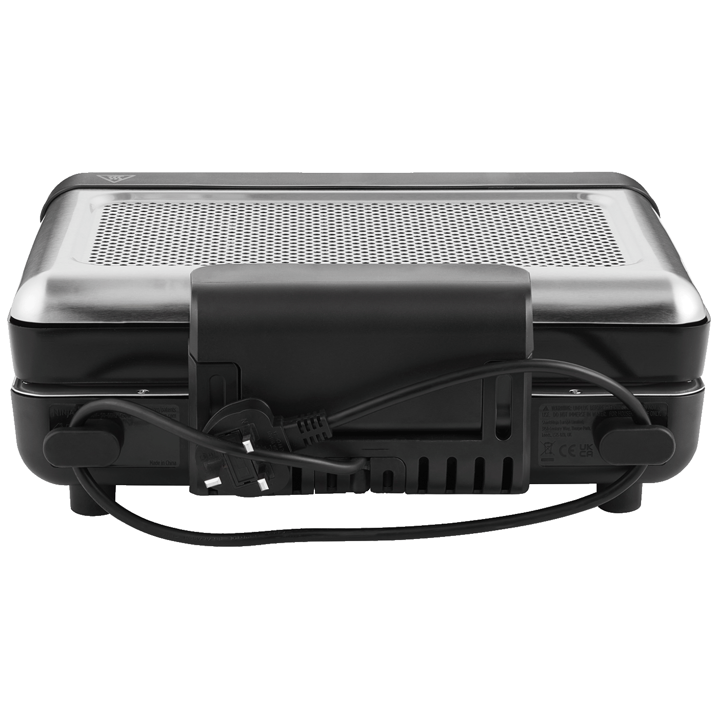 Perforirani poklopac se može skinuti i lako prati u perilici posuđa ili ručno. Uklonjive ploče za kuhanje imaju neprianjajući sloj za jednostavno čišćenje. Posuda za mast hvata masnoću koja curi i sokove od kuhanja, osiguravajući čisto kuhanje i jednostavno čišćenje. Praktično spremište za kabele održava sve uredno.