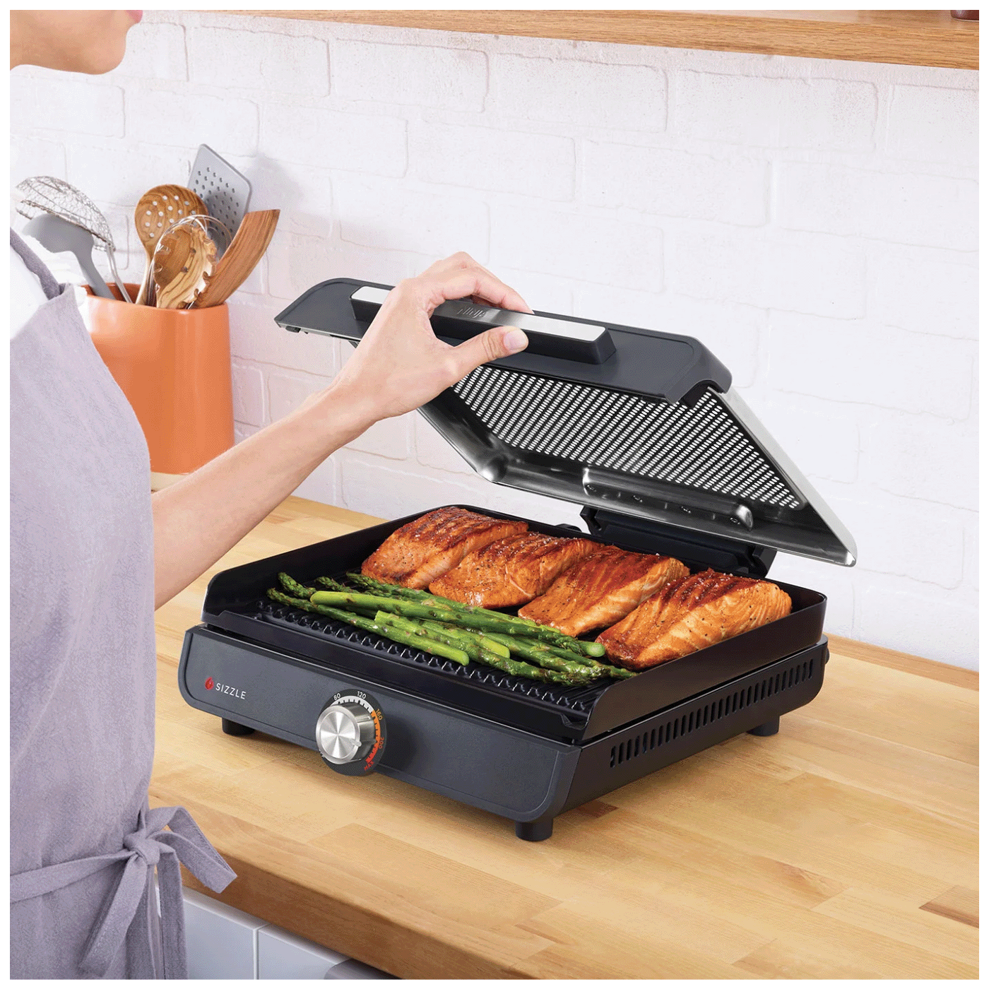 Sa zatvorenim poklopcem, hrana je koncentrirana na temperaturi za autentični okus pečenja na žaru i savršeno pečenje - idealno za kuhanje delikatne hrane ili proteina bez prekuhavanja ili za hranu koja zahtijeva okretanje, poput jaja, palačinki i prženih krumpirića. Poklopac se može skinuti - savršen za tostirane sendviče, debele odreske ili smrznute škampe. Odvojivi, perforirani poklopac sprječava prskanje i može se ukloniti radi lakšeg čišćenja kako bi se spriječilo nakupljanje masnoće.