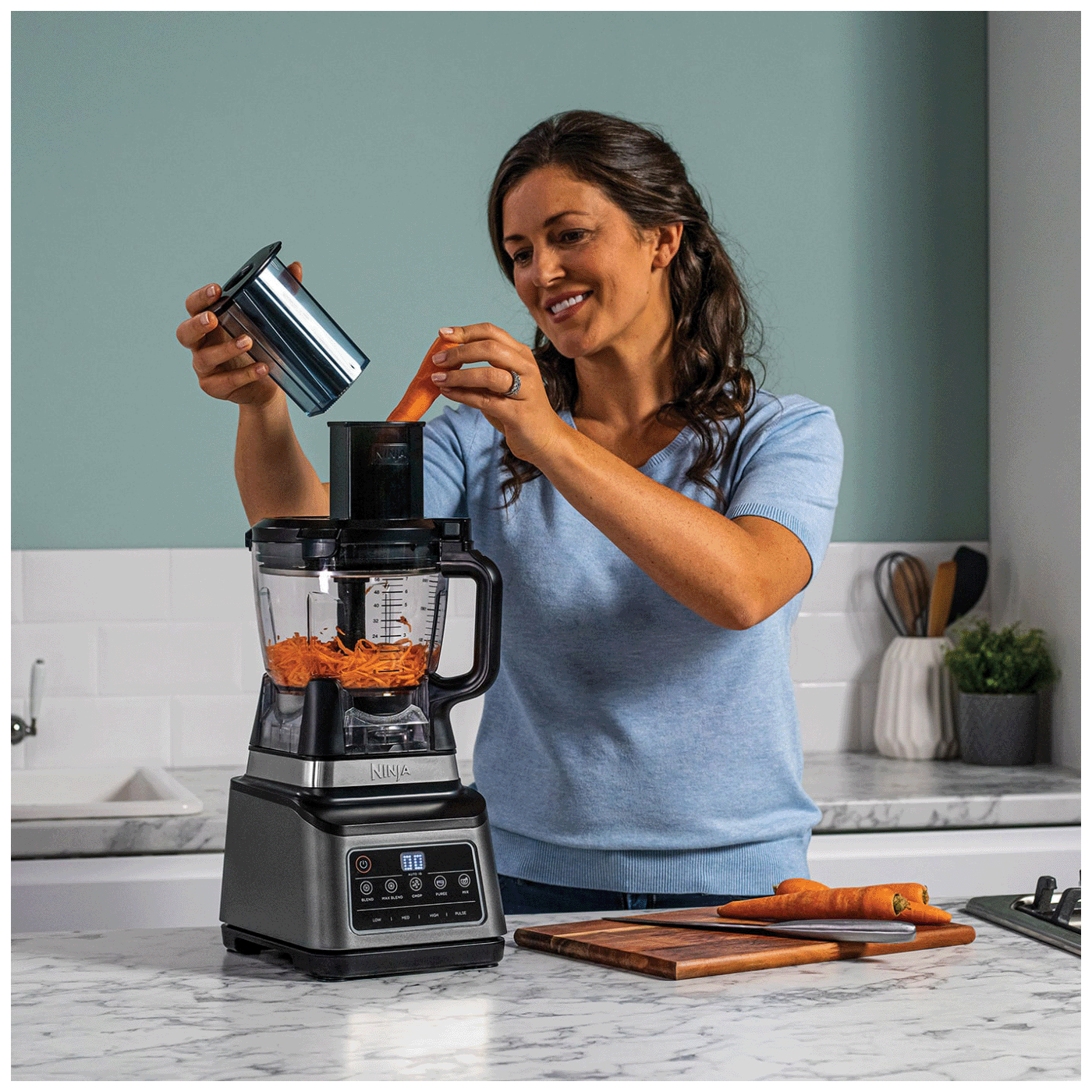 Snažni motor od 1200 W pokreće Ninjine posebno dizajnirane, izmjenjive umetke i dodatke, osiguravajući izvrsne rezultate svaki put.