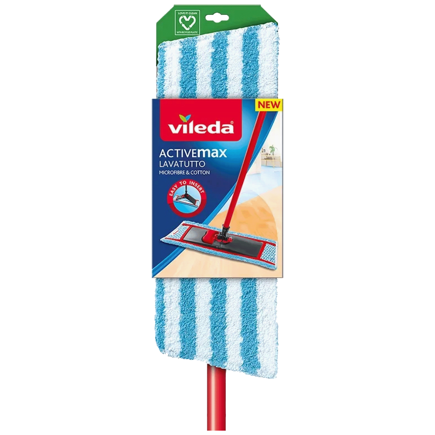 Vileda Active Max je plosnati mop dizajniran za mokro čišćenje svih vrsta podova – pločica, parketa, laminata i drugih tvrdih površina. Zahvaljujući svom pametnom dizajnu, omogućava temeljito i udobno čišćenje čak i u uglovima.
