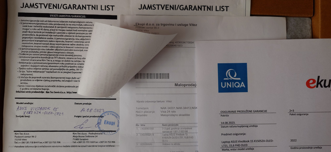 Laptop ASUS VivoBook 15 X1505ZA-OLED-L721 u odlično očuvanom stanju uz 3 godine produžene garancije.