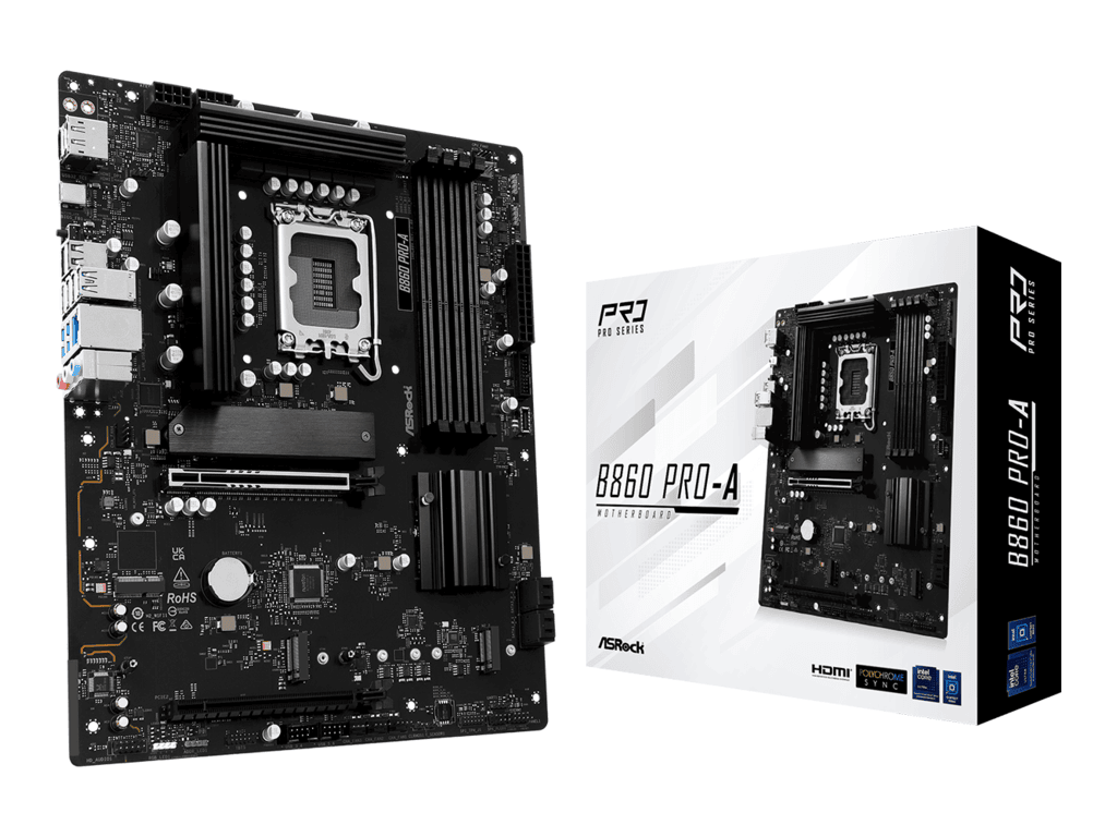 ASROCK MB B860 PRO-AIntel B860, 4xDDR5, 3xM.24xSATA3, 16xUSB, HDMI, DP, RAID, ATX
