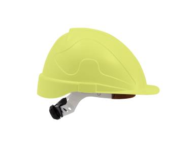 Zaštitna kaciga neonsko žute boje, model Meister, pruža visokokvalitetnu zaštitu glave od udaraca, padajućih predmeta i drugih opasnosti na radnom mjestu.