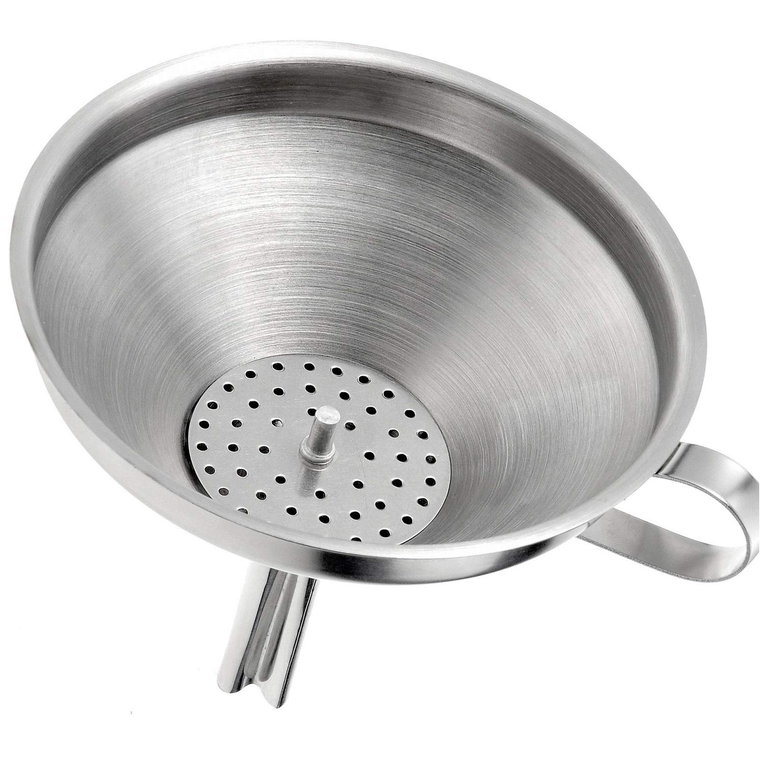 Lijevak 12 cm 18/8 sa sitom za otpad 1108332, idealan za tekućine, ali i za punjenje šećera u posude za posipanje, sa dugim izljevom koji pruža dobar grip, pogodan za pranje u mašini, izrađen od nerđajućeg čelika.
