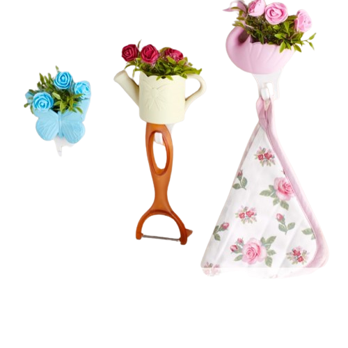 PVC DEKORACIJA KUKICA EVA5628 predstavlja multifunkcionalni dodatak vašem domu. Ova vaza sa cvijećem u kombinaciji sa kukicom za kuhinjske potrepštine donosi praktičnost i šarm u vašu kuhinju.