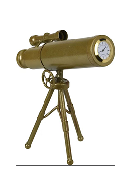 Teleskop sat je moderan dodatak i ukras svakog stana, kuće, kancelarije ili restorana. Dizajniran je da se postavi na komodu, radni sto ili policu. Ovaj sat ima jedinstven oblik inspirisan starim teleskopima. Posebno se uklapa u sobe uređene u LOFT stilu i slične moderne enterijere. Izrađen je od lakiranog metala, što mu daje elegantan izgled, a dimenzija sata je 220x230x120 mm. Ovaj sat također predstavlja savršenu ideju za poklon.
