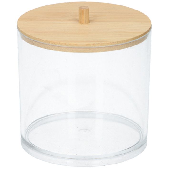 Kozmetički organizer za šminku je elegantan i praktičan. Napravljen je od pleksiglasa s prekrasnim bambusovim poklopcem koji mu dodaje sofisticiran izgled. Veličine je 9,7 x 9,7 x 10 cm, što ga čini praktičnim za prenošenje i postavljanje na željeno mjesto u vašem prostoru.