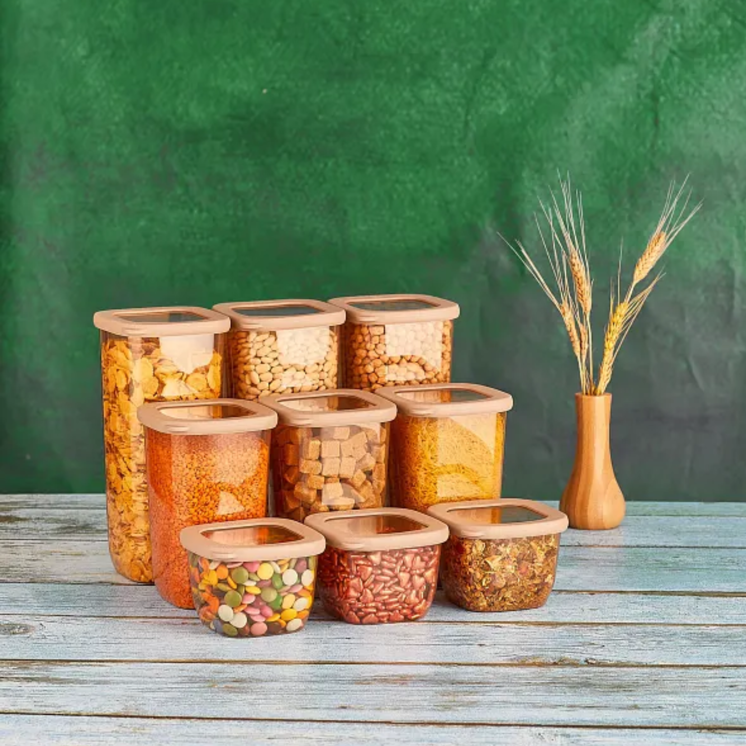 Set posuda za odlaganje Kumsal u bakar boji, plastičan, nudi praktično rješenje za organizaciju hrane. Ovaj set sadrži različite veličine posuda koje su idealne za čuvanje namirnica različitih količina.