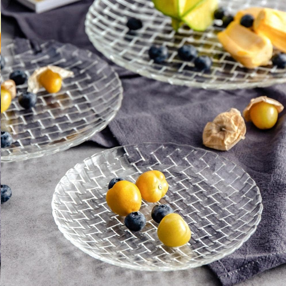 Stakleni desertni tanjir promjera 15 cm je elegantan i jednostavan tanjir, savršen za posluživanje manjih porcija desertnih jela, kolača ili voća. Izrađen je od stakla, što mu daje transparentnost i čvrstoću, čineći ga pogodnim za svakodnevnu upotrebu ili posebne prilike.