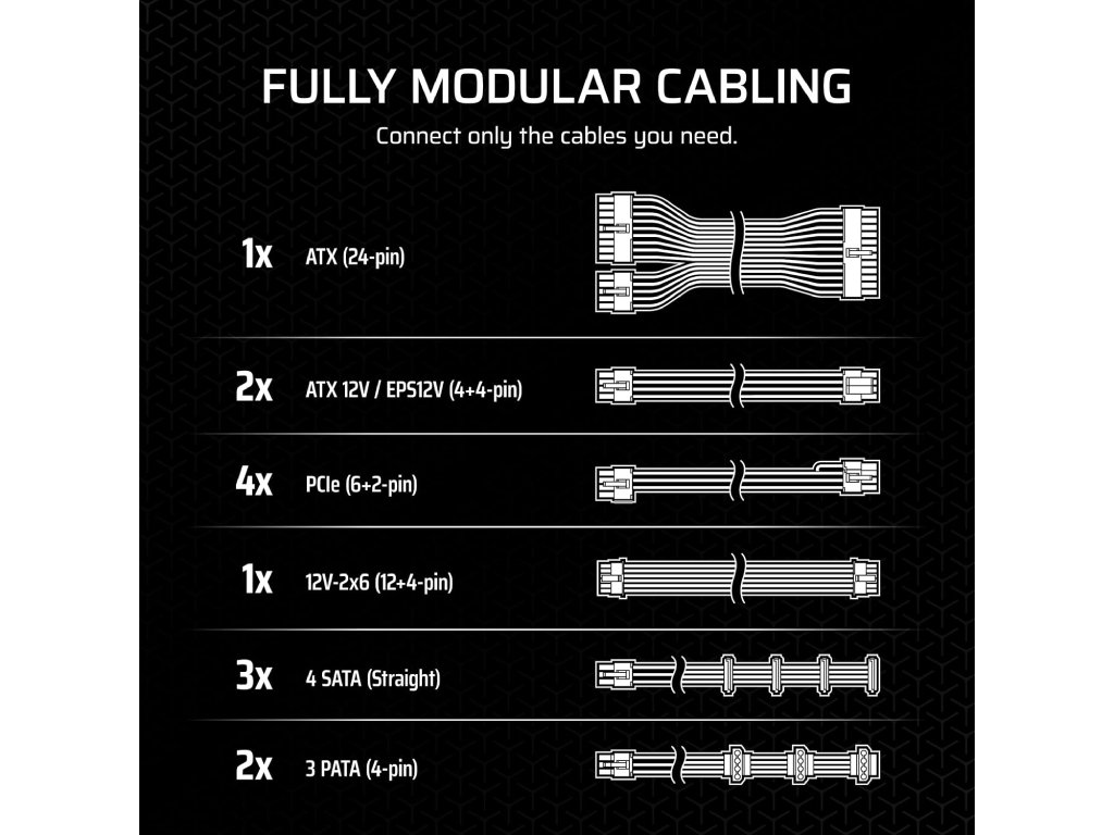 Corsair PSU 1000W RM1000xGold, Fully Modular, 12V-2x612xSATA, 4xPCIe, ATX 3.1, PCIe 5.1