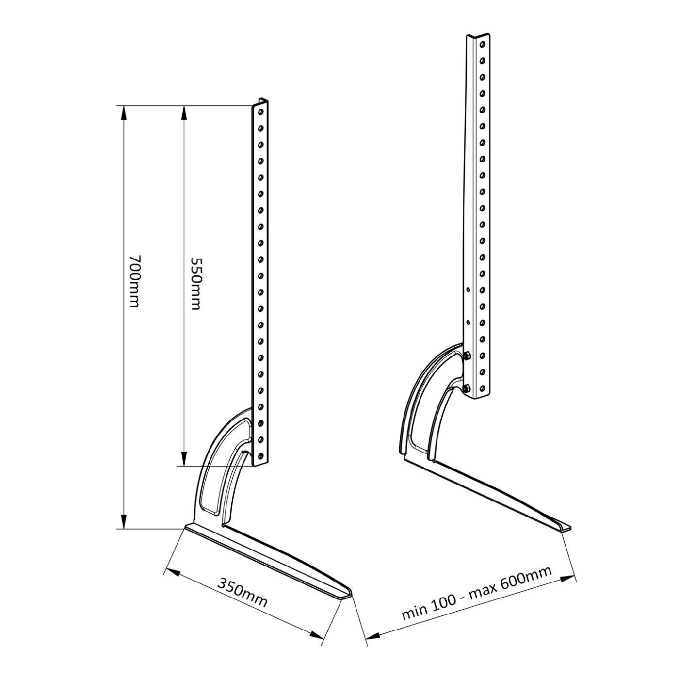 Univerzalni stolni stalak za TV / monitor pruža fleksibilnost i čvrstoću — idealan za korisnike koji ne žele montirati uređaj na zid ili nemaju mogućnost zidne montaže.