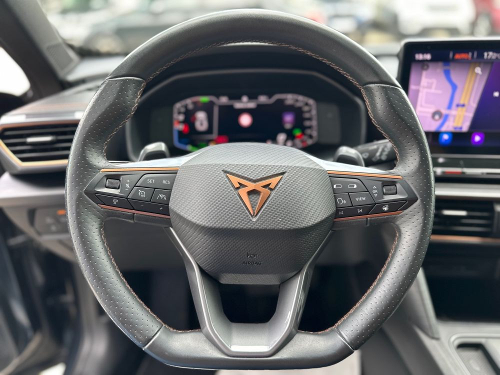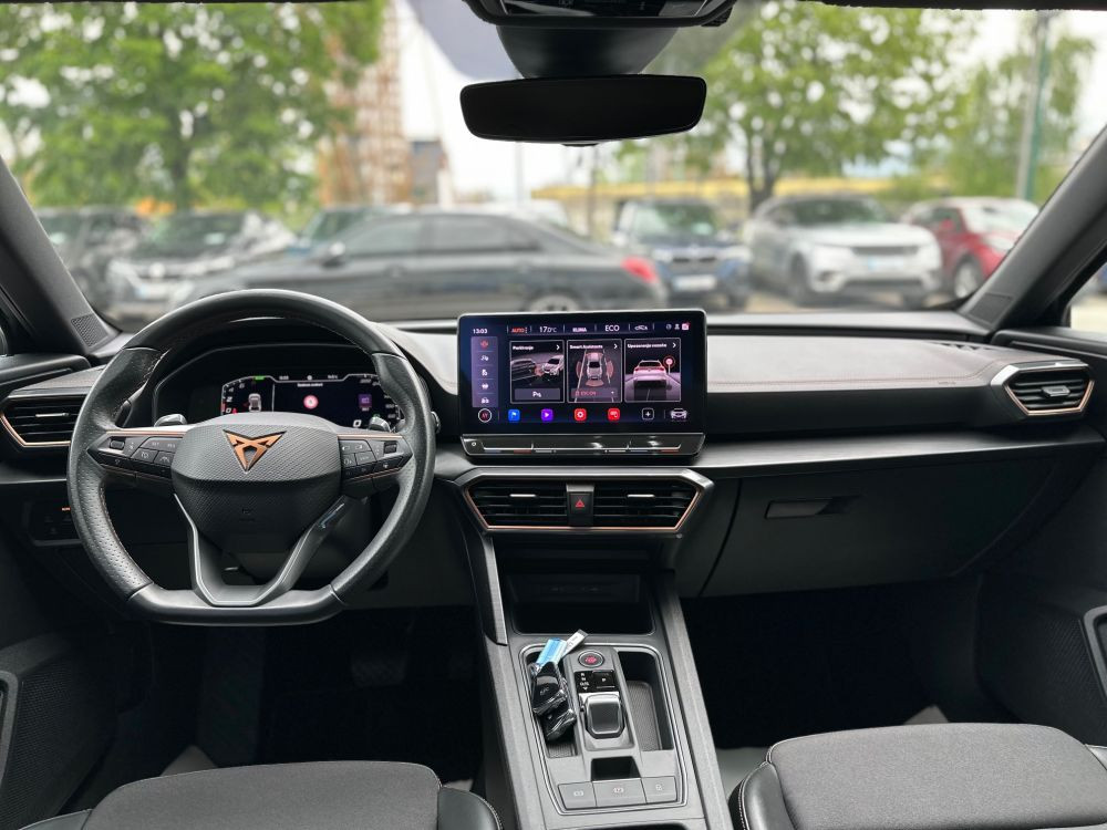 Elektronska kontrola stabilnosti i elektromehanički pojačivač kočenja Elektronska blokada diferencijala XDS Adaptivna kontrola podvozja DCC Sportski branici Supersportski grijani upravljač (sa "satelitskim" tipkama i Tiptronic funkcijom) ISOFIX priprema za dječija sjedišta Varijabilno dno prtljažnika Prednja sjedala podesiva po visini Preklopiv naslon stražnje klupe, sa središnjim naslonom za ruke Crni krovni nosači Toplotna izolacija prednjeg stakla Sistem zaključavanja vozila i pokretanja motora bez upotrebe ključa Keyless Advanced bez SAFELOCK funkcije Termoizolaciona stakla na vozilu Zatamnjena stakla pozadi Automatski zatamnjivo unutrašnje ogledalo Električni podizači prednjih i zadnjih stakala Džepovi za pohranu na poleđini prednjih sjedala Zadnji spojler u boji vozila Dekorativni umetci Ogledala u prednjim štitnicima za sunce Bočni zračni jastuci i zračne zavjese sprijeda, sa centralnim zračnim jastukom Prednji središnji naslon za ruke Kućišta vanjskih ogledala i ručke vrata u boji vozila Sistem podrške kod zadržavanja vozila u traci Lane Assist plus Traffic Jam Assist Vanjska ogledala, elektro podesiva, preklopiva i grijana, sa funkcijom obaranja na strani suvozača Side Assist sistem za podršku kod promjene trake, Rear Traffic Alert i exit warning Elektronska blokada pokretanja motora Active Info Display – Medium Senzor za kontrolu pritiska u gumama Start-stop sistem sa generativnim kočenjem Podrška za leđa u prednjim sjedalima Park assist Sistem za navigaciju „+“ 12“ Matrix LED prednja svjetla Autonomni sistem kočenja u slučaju nužde Front assist sa monitoringom pješaka i biciklista Zadnji brisač sa intervalnom aktivacijom Prednji brisači sa intervalnom aktivacijom sa senzorom za svjetlo i kišu Zvučnici (naprijed i nazad) 2 svjetla za čitanje sprijeda i 2 straga Adaptivni tempomat s limitatorom brzine Zadnje svjetlo za maglu LED zadnja svjetla, dinamički pokazivači smjera Svjetla za maglu sprijeda Senzor za svjetlo sa auto. LED dnevnim svjetlima, Coming / Leaving Home funkcija Connectivity Box Upozorenje za nevezan pojas CUPRA Full link wireless 230V utičnica u centralnoj konzoli straga CUPRA CONNECT gen3 – Safety, Service i Remote Access, online infotainment Sistem upozorenja vozača, senzor za prepoznavanje umora Climatronic – 3-zonski klima uređaj s naprednom filtracijom zraka i kontrolama klime straga Presvlake sjedišta VZ eCall sistem za hitne slučajeve (ne funkcioniše u BiH) Sportska prednja sjedišta Glasovno upravljanje (lokalni jezik nije podržan) Paket hromiranih detalja Multifunkcionalna kamera Pretinac ispod desnog prednjeg sjedišta Ambijentalno osvjetljenje u unutrašnjosti, tip 2 Dinamični sistem prepoznavanja saobraćajnih znakova Digitalni radio prijemnik Upravljački sistem osjetljiv na brzinu (Servotronic) USB – C priključak i utičnica/e za punjenje Stražnji amortizeri za sportsku verziju Električna parking kočnica