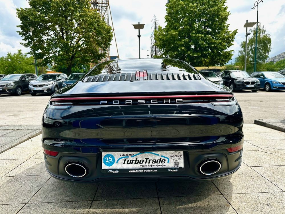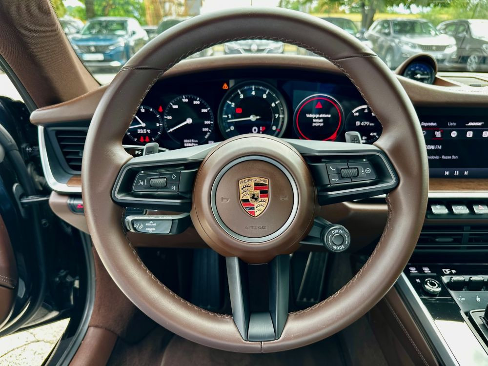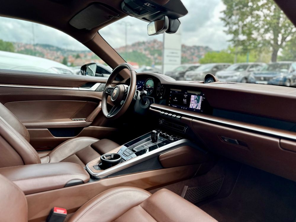 Porsche Carrera 3.0 Vozilo kupljeno i odrzavano u ovlastenom servisu Sport Chrono paket uključuje prekidač za način rada, Porsche Track Precision App i prikaz temperature u gumama,Leather Interior Exclusive Manufaktur (two-tone), Bordeaux Red and Choice of leather colour,Šiber Sportski ispušni sustav Sportski ispušni sustav, crne ispušne cijevi Sustav pomoći u vožnji: Porsche InnoDrive uključujući adaptivni tempomat ◦ Tempomat s adaptivnim tempomatom Sport Chrono paket Električni krovni otvor (staklo) BOSE zvučni sustav Laki aluminijski naplatci (crni, visokosjajni) ◦ Poklopci glavčina kotača s obojenim Porsche grbom LED prednja svjetla uključujući Porsche Dynamic Light System (PDLS) ◦ 4-točkovna LED dnevna svjetla Ekskluzivna stražnja svjetla Sustav pomoći u vožnji: Pomoć pri promjeni trake Sustav pomoći u vožnji: Pomoć pri parkiranju sprijeda i straga uključujući kameru za vožnju unatrag ◦ Sustav pomoći u vožnji: Pomoć pri parkiranju sprijeda i straga ◦ Kamera za vožnju unatrag Vanjski/unutarnji retrovizori s automatskim zatamnjivanjem i senzorom za kišu Komforni pristup (otključavanje bez ključa) Zatamnjena stražnja stakla (zatamnjena stakla) Grijani upravljač (GT Sport / koža) s multifunkcijom i funkcijom prekidača Paket unutarnje rasvjete / Dizajn rasvjete Paket ◦ Ambijentalna rasvjeta za stropnu oblogu Grijana prednja sjedala Crne obloge prozora (visoki sjaj) Sportska sjedala Plus (električno podesiva, u 4 smjera) Električni vanjski retrovizori Sklopivi Home Link (otvarač garažnih vrata) Oslikani natpis Porsche Servo upravljač Plus (ovisan o brzini) Prednji nasloni za glavu s grbom Porschea Spremnik goriva: 90 litara Ulazno svjetlo s LED projektorom i natpisom Porsche Protuprovalni uređaj za kotače (blokade naplataka) Komplet za popravak guma Priprema za krovni transportni sustav Paket za pohranu Vozilo bez naziva modela Standardna oprema Zračni jastuk za vozača/suvozača Vrsta pogona: Pogon na stražnje kotače Asferično vanjsko ogledalo, lijevo Električno podesivo i grijano vanjsko ogledalo, oba LED pokazivači smjera Connect Plus (Bluetooth, Apple CarPlay, Wi-Fi, Sustav za praćenje vozila) Tkanina za stropnu oblogu Protuprovalni alarm s nadzorom unutrašnjosti Tahometar Automatsko uključivanje prednjih svjetala Zaštitne lajsne na pragovima s nazivom modela (aluminij) Sustav pomoći vozaču: Hill Holder Pomoć vozaču sustav: Sustav upozorenja na sudar s intervencijom kočenja i detekcijom pješaka Električni podizači prozora Podne prostirke Mjenjač: 8-stupanjski mjenjač s dvostrukom spojkom (PDK) Držači za čaše LED stražnja svjetla Grijano stražnje staklo Stražnji spojler Unutrašnjost: Koža, standardna boja kože Filter kabine: Filter s aktivnim ugljenom (filter mirisa) Isofix nosači za dječju sjedalicu na suvozačevom sjedalu Tip karoserije: 2 vrata Kukavice za kapute na naslonu sjedala Koža Dvozonska automatska klima Sustav zračnih jastuka za glavu Porsche Side Impact Protection System (POSIP) Zračni jastuk za glavu i ramena (prednji) (toraks bag) Mobilne online usluge Android Auto Motor: 3,0 litre - 283 kW Turbo CAT Filter čestica (OPF) Električna parkirna kočnica Porsche Active Suspension Management (PASM) Porsche Communications Management (PCM) uključujući online navigacijski modul Porsche Stability Management (PSM) Digitalni radio prijem (DAB+) Sustav za nadzor tlaka u gumama Niske emisije prema emisijskoj normi Euro 6d Oznake serije modela Lakirane obloge pragova Elektromehanički servo upravljač Sport tipka Start/stop sustav Turbo Sustav za praćenje vozila (PVTS) Zatamnjena stakla Imobilizator Centralno zaključavanje s daljinskim upravljačem
