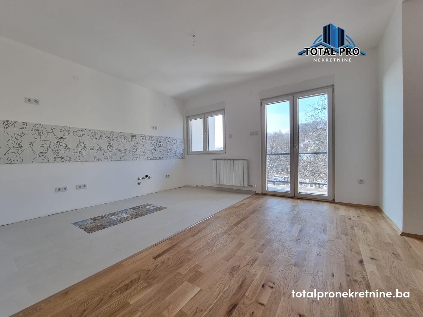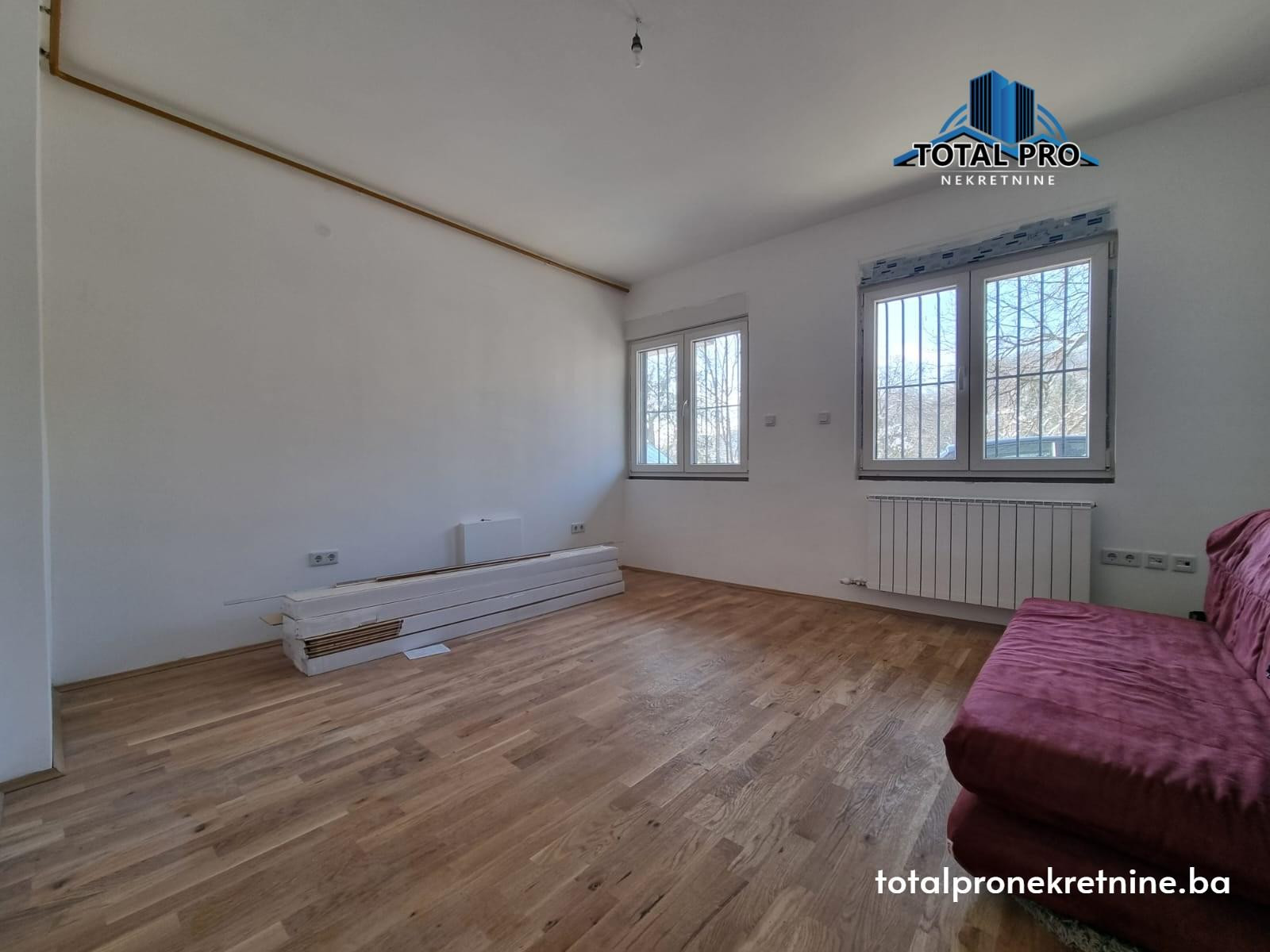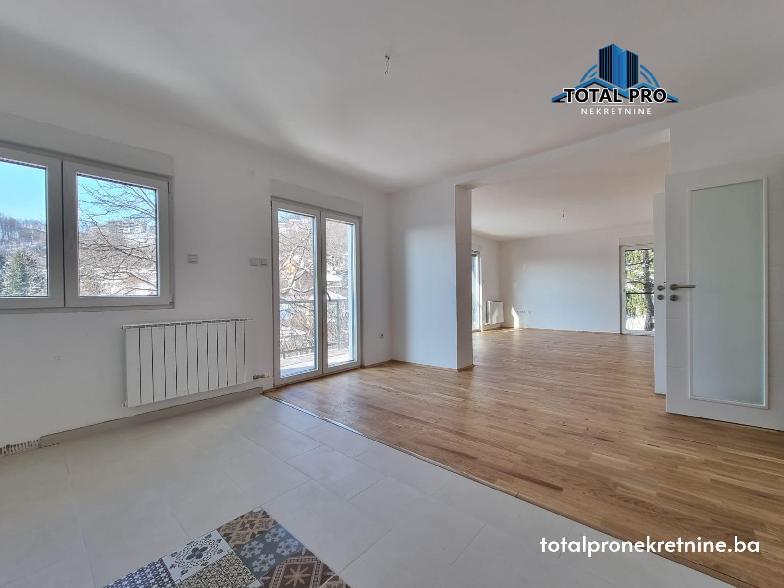 Nekretnina je potpuno novoadaptirana, korištenjem modernih i visokokvalitetnih materijala. Vanjska stolarija je PVC sa vanjskim roletnama, unutrašnja drvena stolarija, dok su ulazna vrata blindirana. Podne obloge čine parket i keramika, pružajući elegantan i dugotrajan izgled.