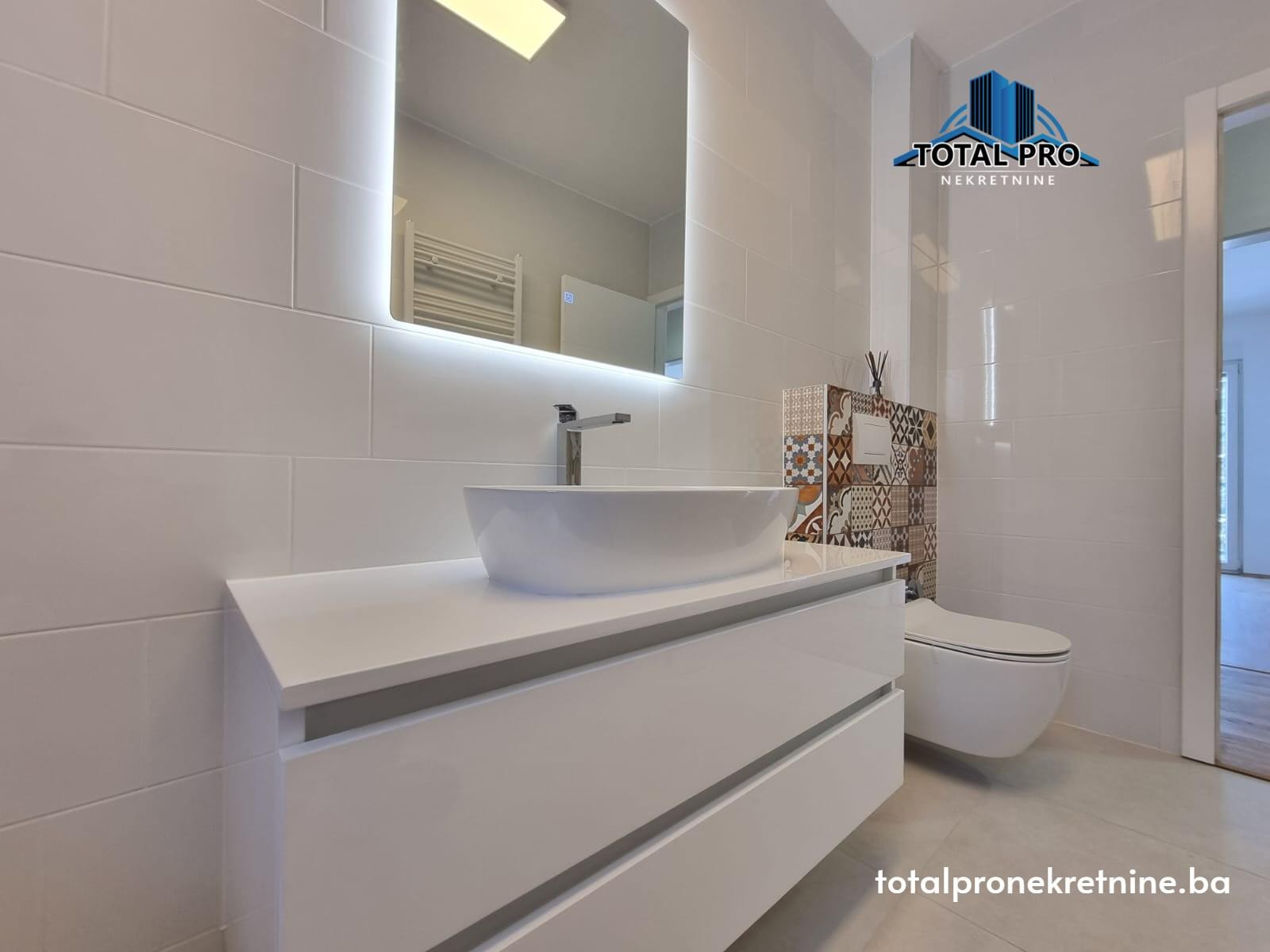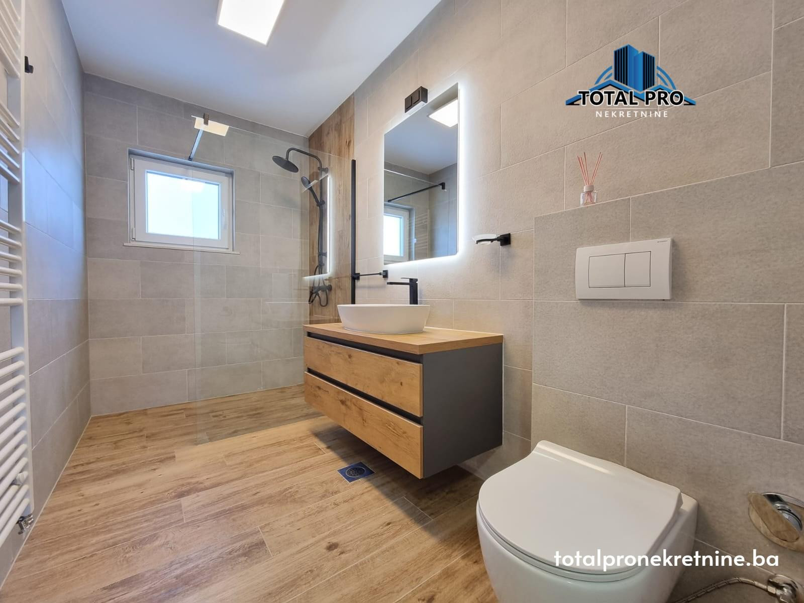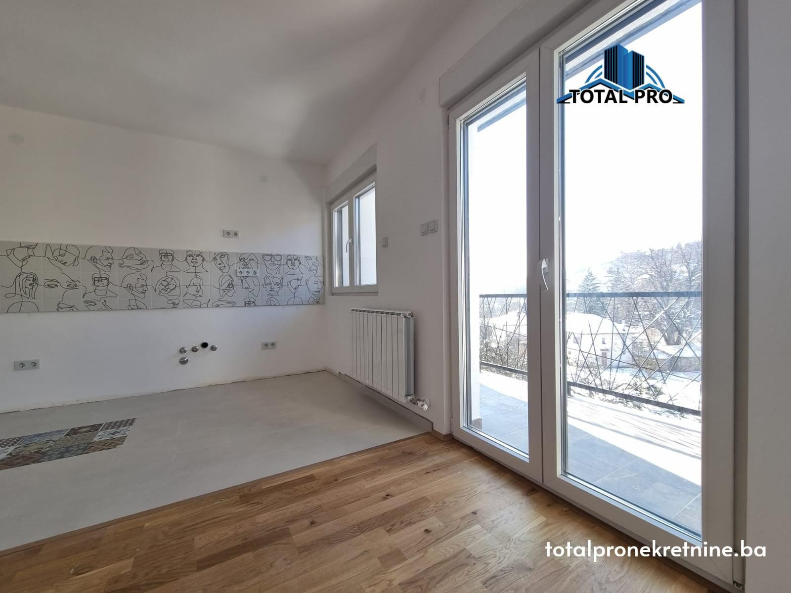 Nekretnina je potpuno novoadaptirana, korištenjem modernih i visokokvalitetnih materijala. Vanjska stolarija je PVC sa vanjskim roletnama, unutrašnja drvena stolarija, dok su ulazna vrata blindirana. Podne obloge čine parket i keramika, pružajući elegantan i dugotrajan izgled.