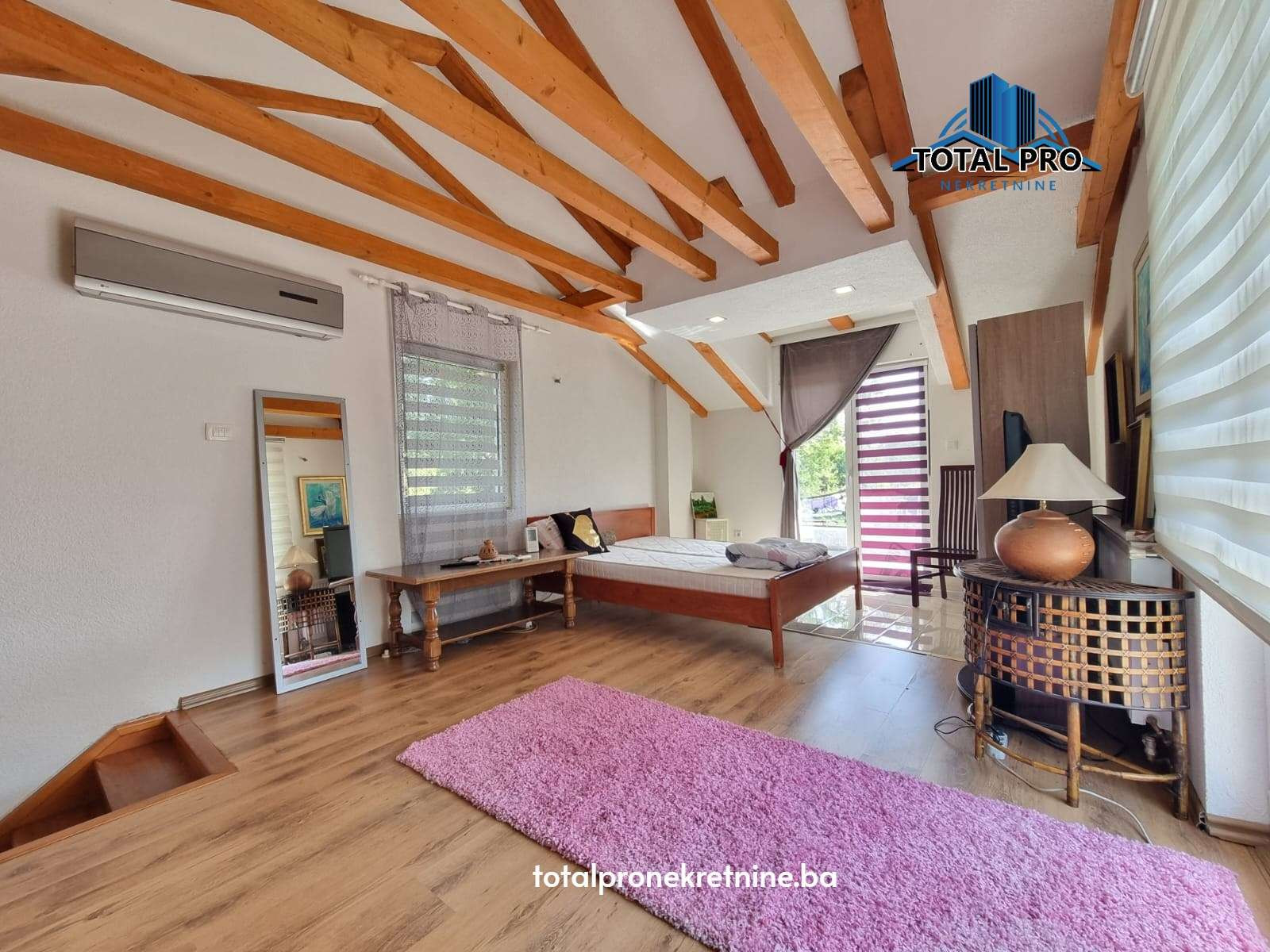 - Prvi sprat: spavaća soba, kupatilo i dva balkona.