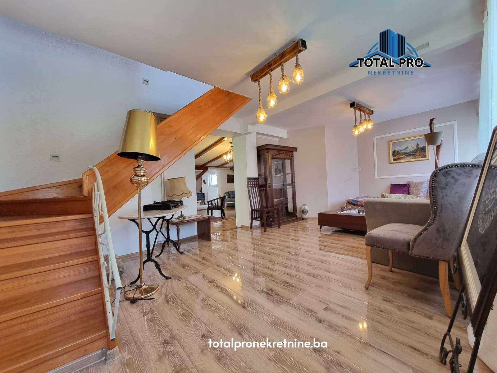 - Prizemlje: dnevni boravak, tri spavaće sobe, kuhinja s trpezarijom i kupatilo uz mogućnost izlaza na natkrivenu terasu i dvorište iz više prostorija;