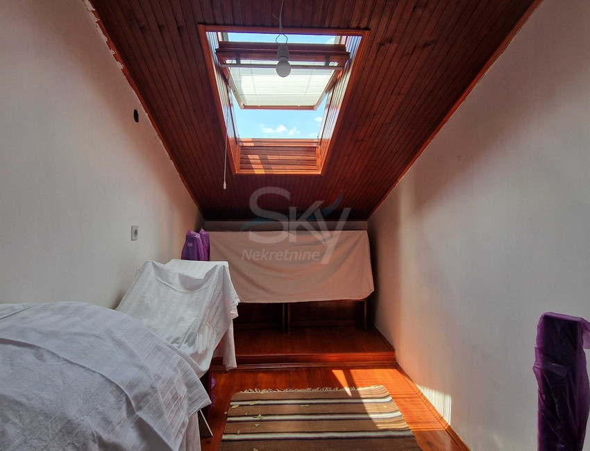 Stan je nadograđen 2001. godine, sve je legalizovano i uknjiženo. Na donjoj etaži je dnevni boravak, kuhinja, spavaca soba, kupatilo, balkon i ostava, dok se na gornjoj etaži nalaze tri sobe, kupatilo i ostava. Grijanje je provedeno, ali na gornjoj etaži trenutno nema radijatora.