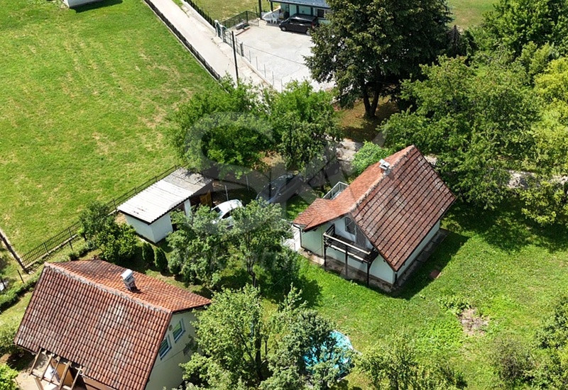 Lokacija: Vikendica se nalazi na prostranom zemljištu u prirodnom okruženju, s bujnim vrtom i panoramskim pogledom na okolna brda. Lokacija nudi mir i privatnost, idealna za ljubitelje prirode i aktivnosti na otvorenom.