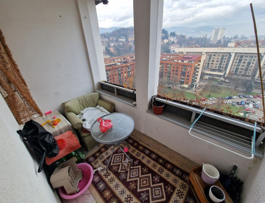 Izdaje se stan na 12. spratu u Marijinom Dvoru, površine 90 m². Stan se sastoji od dvije spavaće sobe, dnevnog boravka, kuhinje, trpezarije, kupatila i odvojenog WC-a, te balkona s kojeg se pruža lijep pogled. Stan se izdaje namješten,a od stvari koje neće ostati su: cipelar, radna stolica, tepih u dnevnoj sobi, tepih u hodniku, ladica u jednoj spavaćoj sobi, tepih na balkonu, stol za šminkanje i vješalo. Grijanje je centralno, a režije u zimskom periodu iznose oko 250 KM. Stan je orijentisan prema jugozapadu i sjeveru, što osigurava puno dnevne svjetlosti. Idealno za one koji traže udoban i funkcionalan stan u jednoj od najatraktivnijih lokacija u Sarajevu.