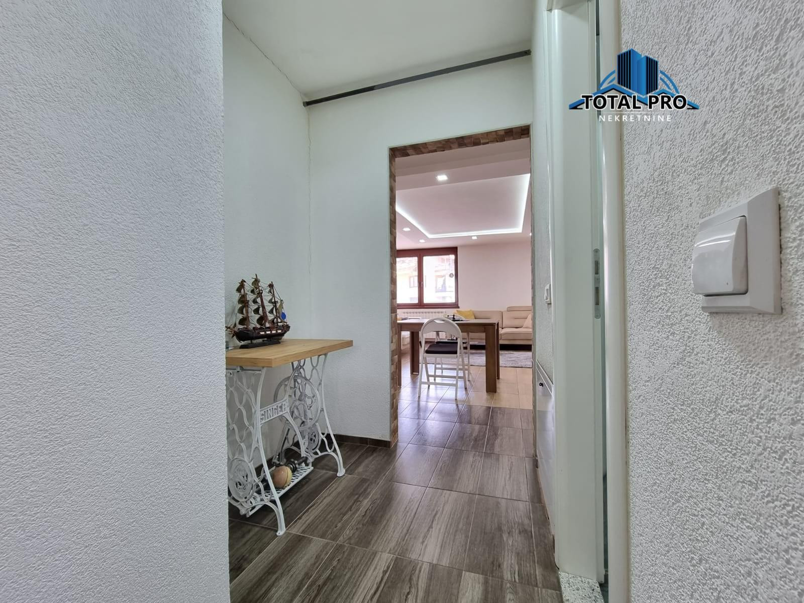 Stan je kompletno i kvalitetno adaptiran 2017. godine. Tom prilikom su zamijenjene sve elektro i vodovodne instalacije. Na podovima je postavljena visokokvalitetna keramika, pri čemu keramika u sobama imitira parket. Unutrašnja i vanjska stolarija su drvene, dok su ulazna vrata blinda. Grijanje je plinsko etažno – podno.