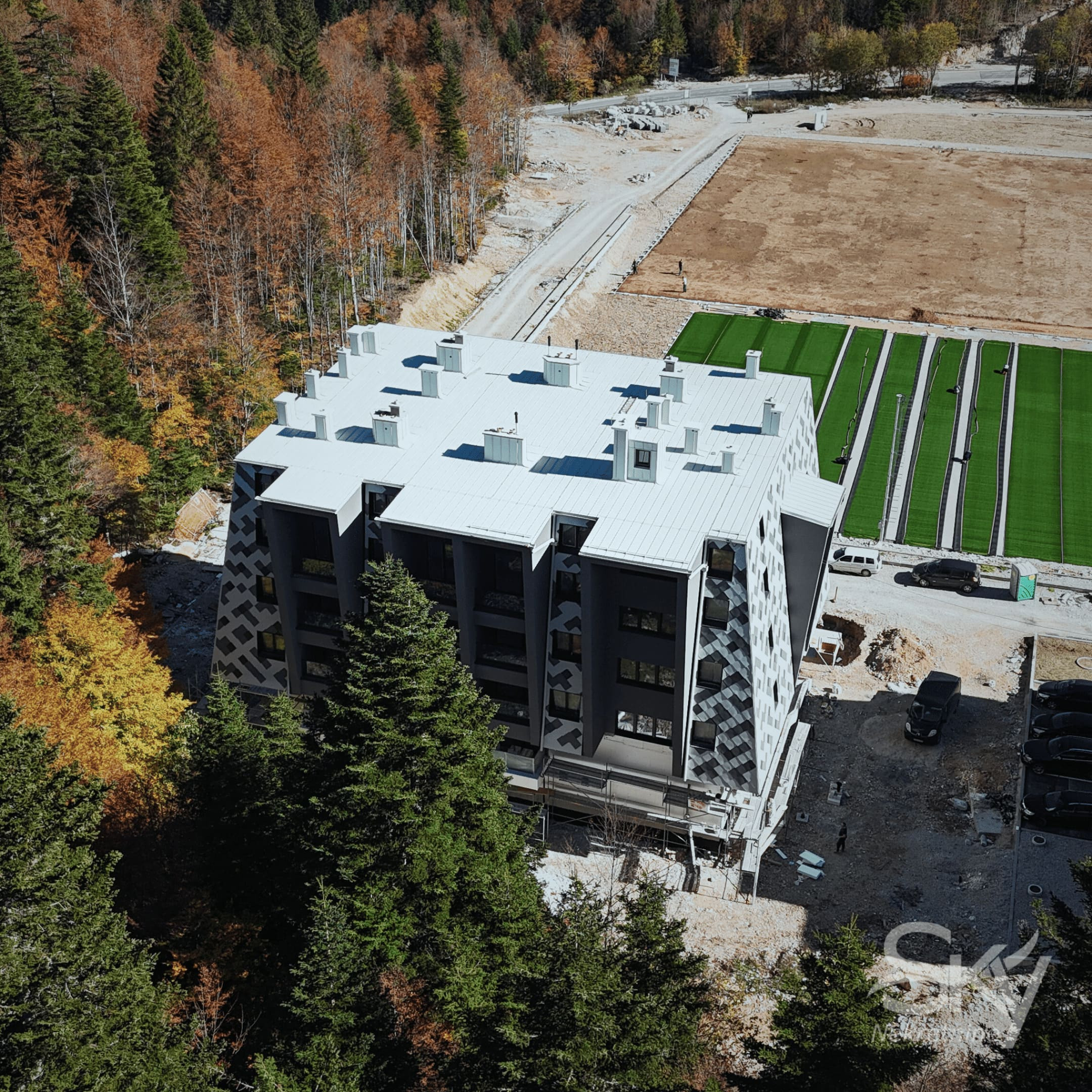 – Fasada i krov vrhunske kvalitete izrađen od svjetski poznatog austrijskog proizvođača “Prefa”, sa termoizolacijom od mineralnih ploča i aluminijskim rombovima.