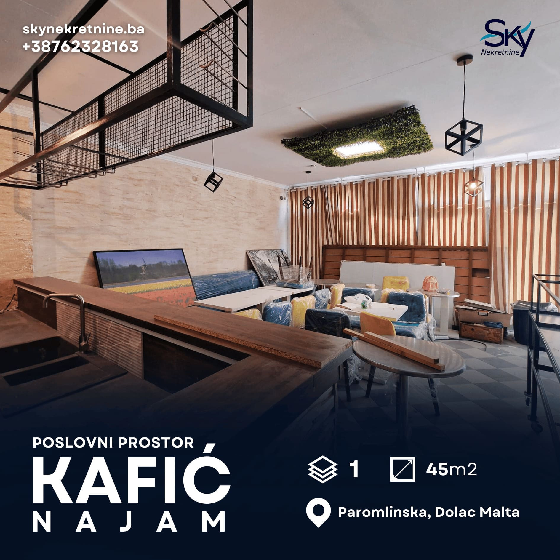 Nudimo u najam poslovni prostor za kafić na atraktivnoj lokaciji u Paromlinskoj ulici, Malta. Prostor je potpuno nov i spreman za rad, s kompletnim inventarom i savremenim dizajnom.