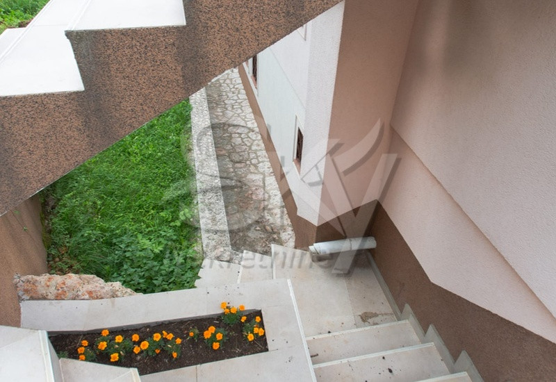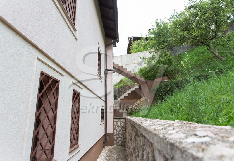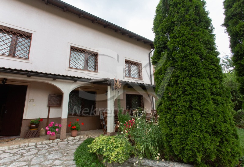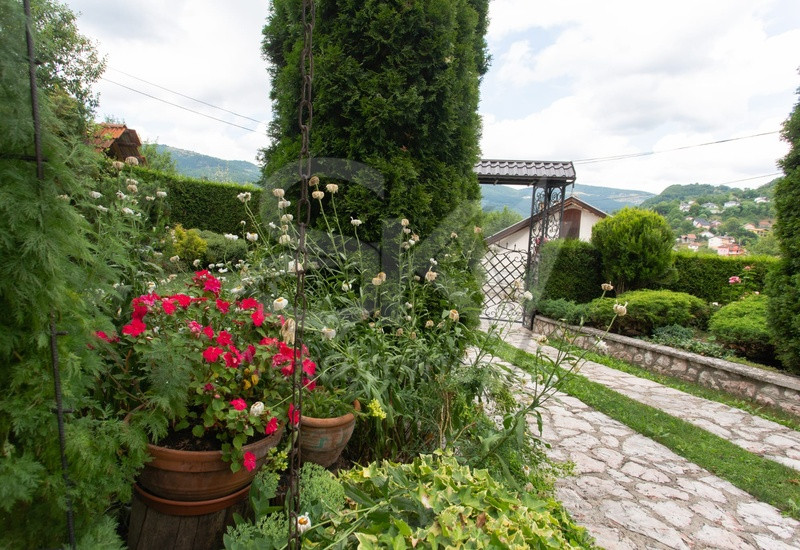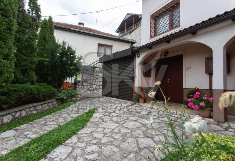 Dodatni prostori: Garaža sa odvojenim prostorom za ogrjev, terasa iznad garaže (20 m²), dvorište sa baštom i kamenom terasom.