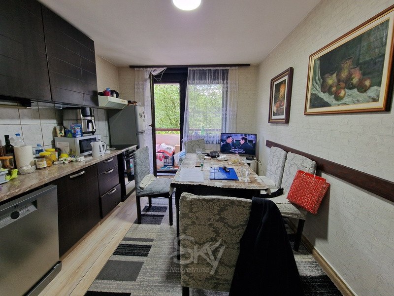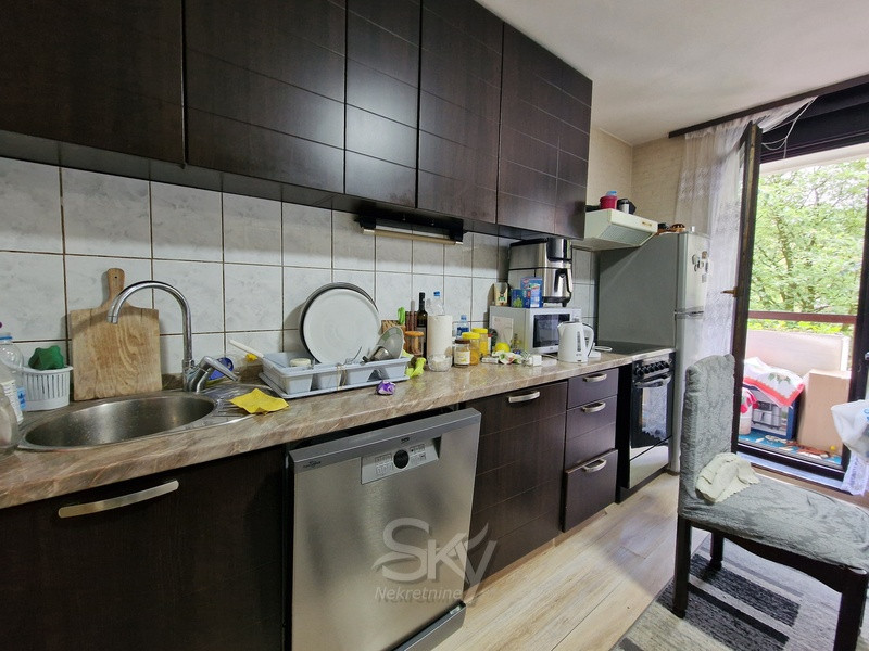 Stan se nalazi na prvom spratu, što ga čini lako dostupnim i pogodnim za sve uzraste. Dvostrana orijentacija pruža obilje prirodne svjetlosti tijekom cijelog dana, čineći prostor svijetlim i ugodnim. Ključne prostorije ovog stana uključuju prostranu kuhinju s trpezarijom, dvije udobne spavaće sobe, svijetli dnevni boravak te dva balkona s prekrasnim pogledom na okolinu. Kuhinja je nedavno kupljena i opremljena modernim uređajima, čineći je savršenim mjestom za pripremu obroka i okupljanje s porodicom i prijateljima. Stan je potpuno namješten, što znači da vam nije potrebno dodatno ulaganje.