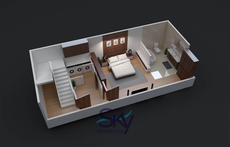 Zgrada se sastoji od prizemlja i četiri sprata, nudeći ukupno 28 stanova, uz mogućnost izbora između dvosobnih i trosobnih stanova, čije površine variraju od 45m² do 65m². Svaki stan je građen koristeći najkvalitetnije materijale, obezbjeđujući vrhunsku izolaciju i centralno grijanje pomoću toplotnih pumpi za maksimalnu efikasnost i komfor. Balkoni dodaju dodatnu vrijednost, omogućavajući uživanje na otvorenom s predivnim pogledom.
