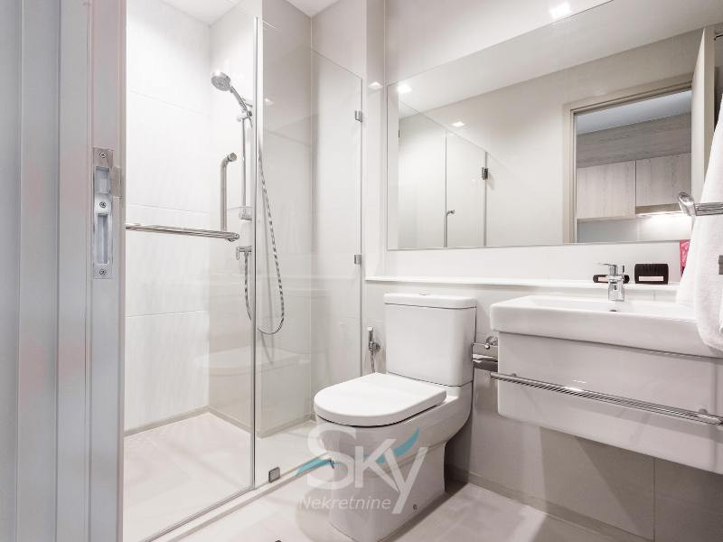 Interijer krasi prvoklasna španska keramika i sanitarija GEBERIT, uz 15 centimetara debelu termoizolaciju za energetsku efikasnost. Krovna terasa nudi prostrani vanjski prostor za uživanje s pogledom na grad.