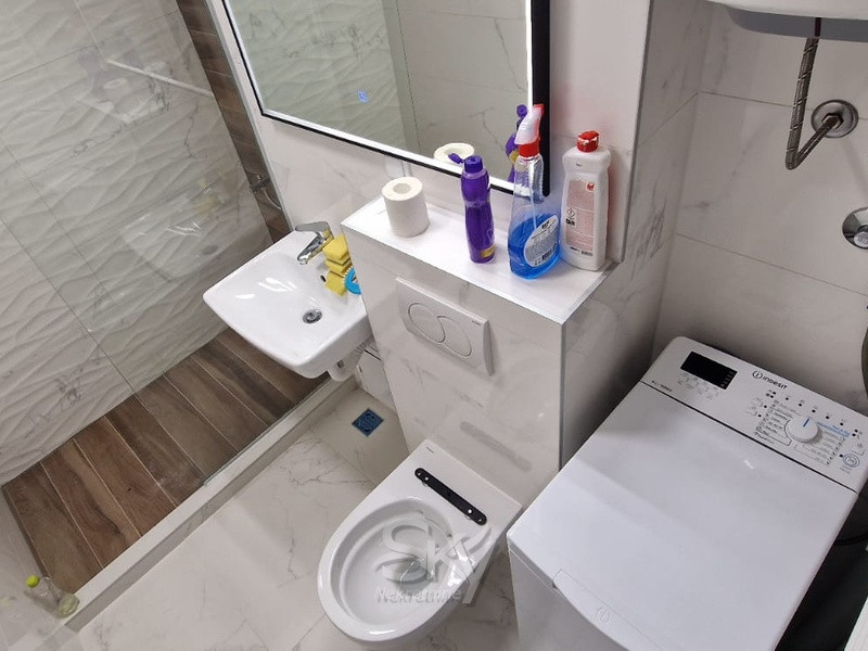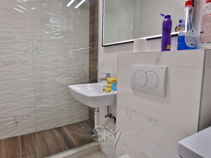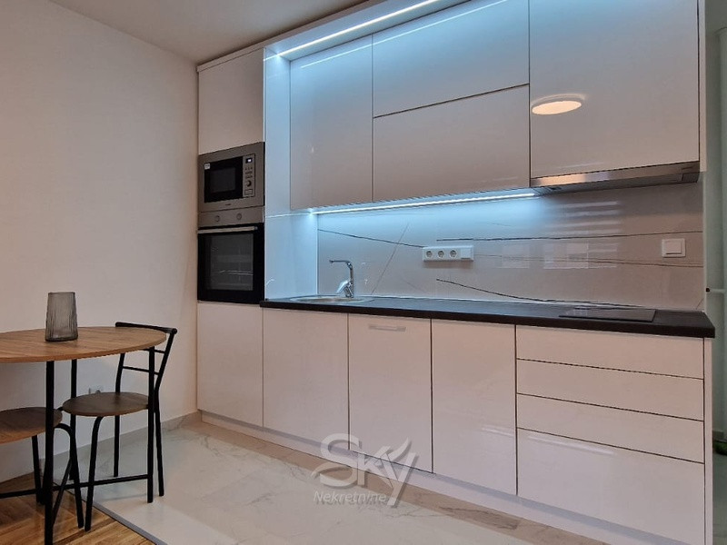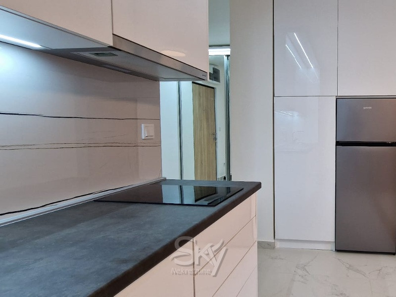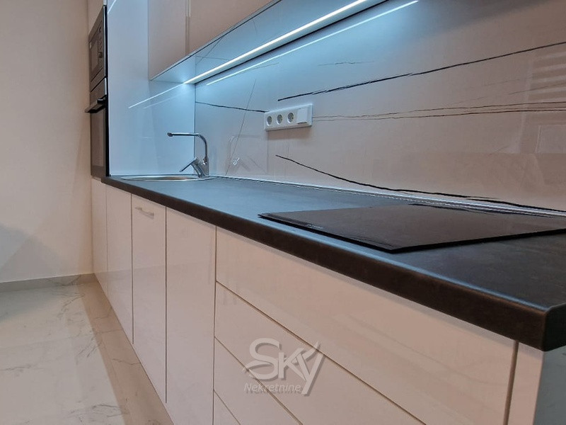Kompletno renoviran, stan odražava moderan i funkcionalan dizajn u svakom segmentu, od namještaja do stolarije, osiguravajući da svaki detalj doprinosi sveukupnoj eleganciji i udobnosti. Opremljenost stanom obuhvata moderni namještaj s mogućnošću prilagođavanja dodatnim elementima prema željama stanara, uključujući klima uređaj, krevet i esencijalne kućanske aparate.