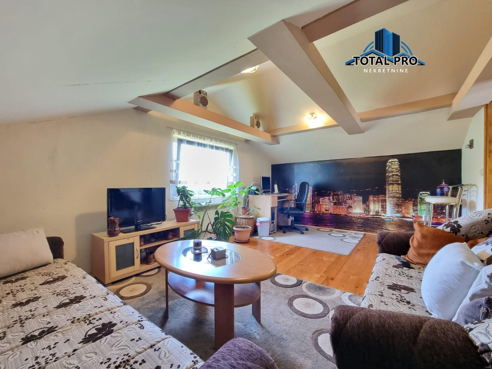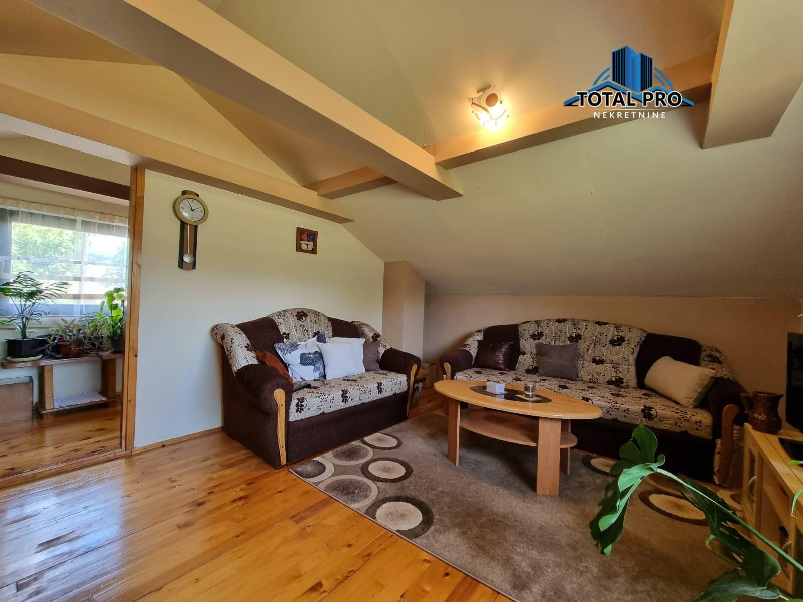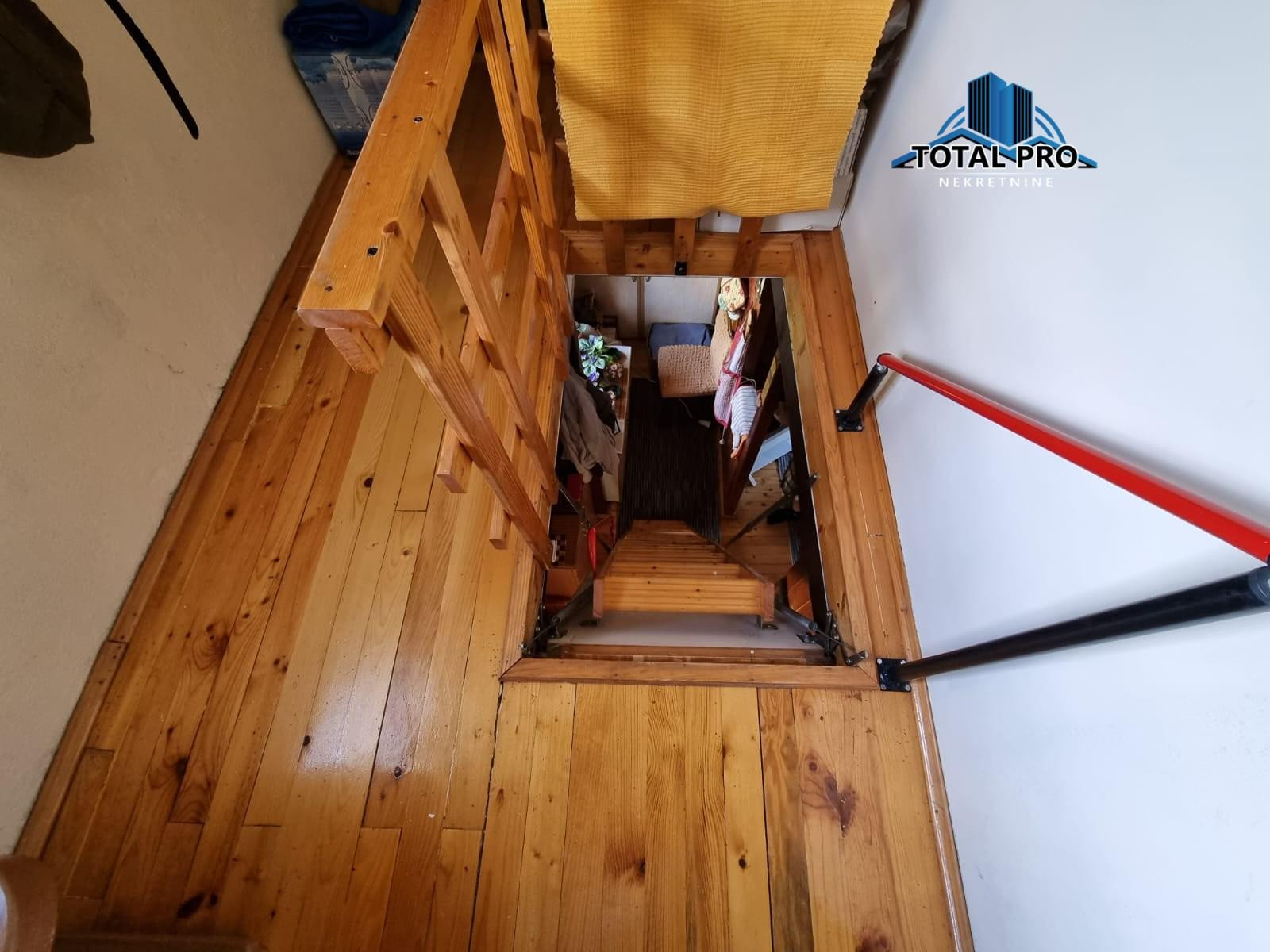 Sprat: predsoblje, velika soba, wc, tavan.