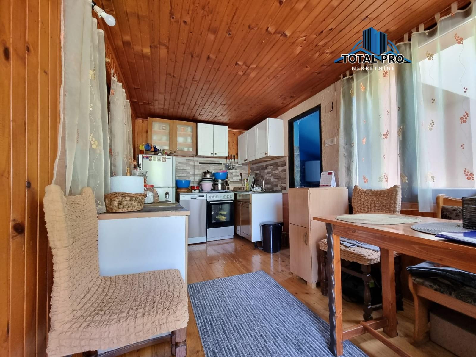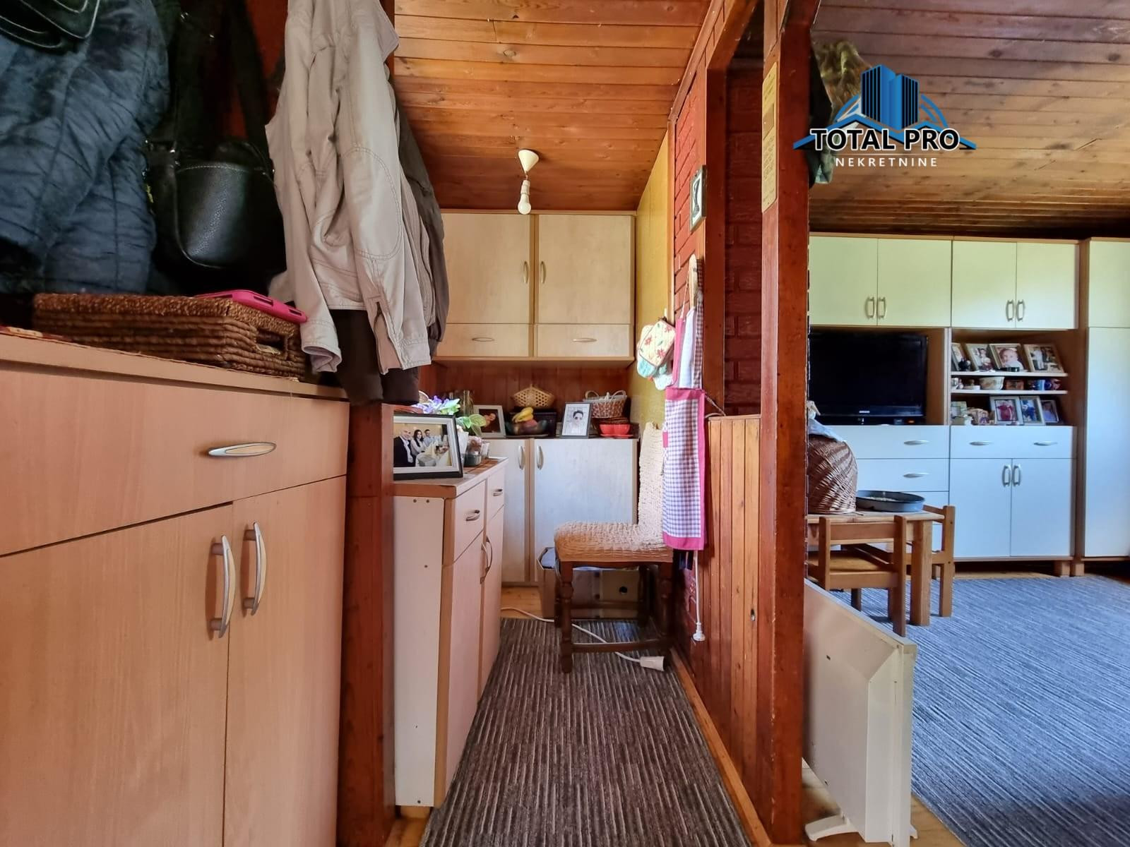 Prizemlje: predulaz, kuhinja sa trpezarijom, kupatilo, dnevni boravak, hodnik sa ostavom i stepeništem, mali podrum.