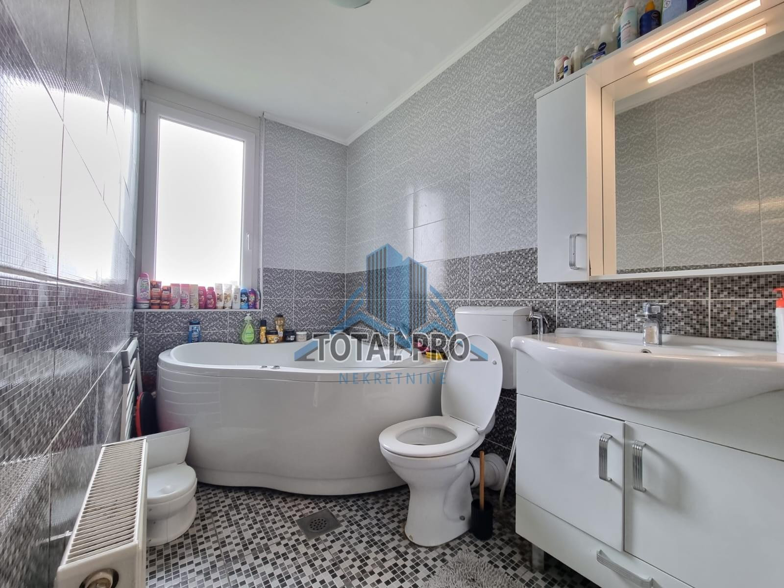 Unutrašnja stolarija drvo i vanjska stolarija PVC, podne obloge laminat i keramika, ulazna blinda vrata. Grijanje u stanu centralno gradsko. Predmetna nekretnina posjeduje podrumski prostor.