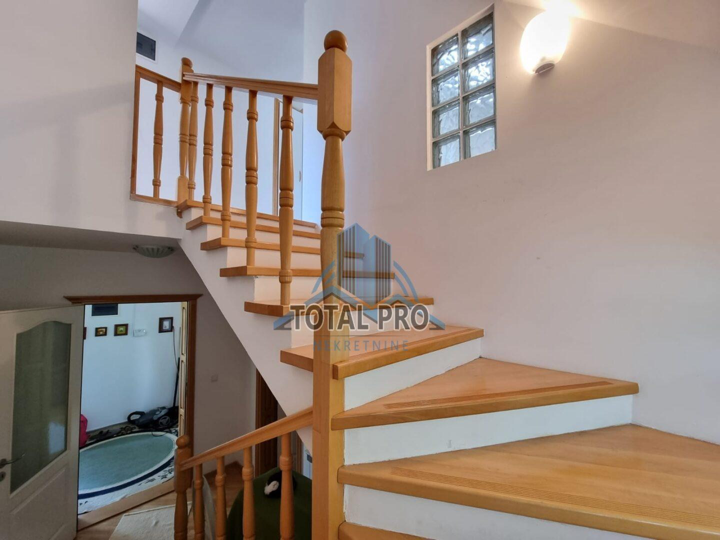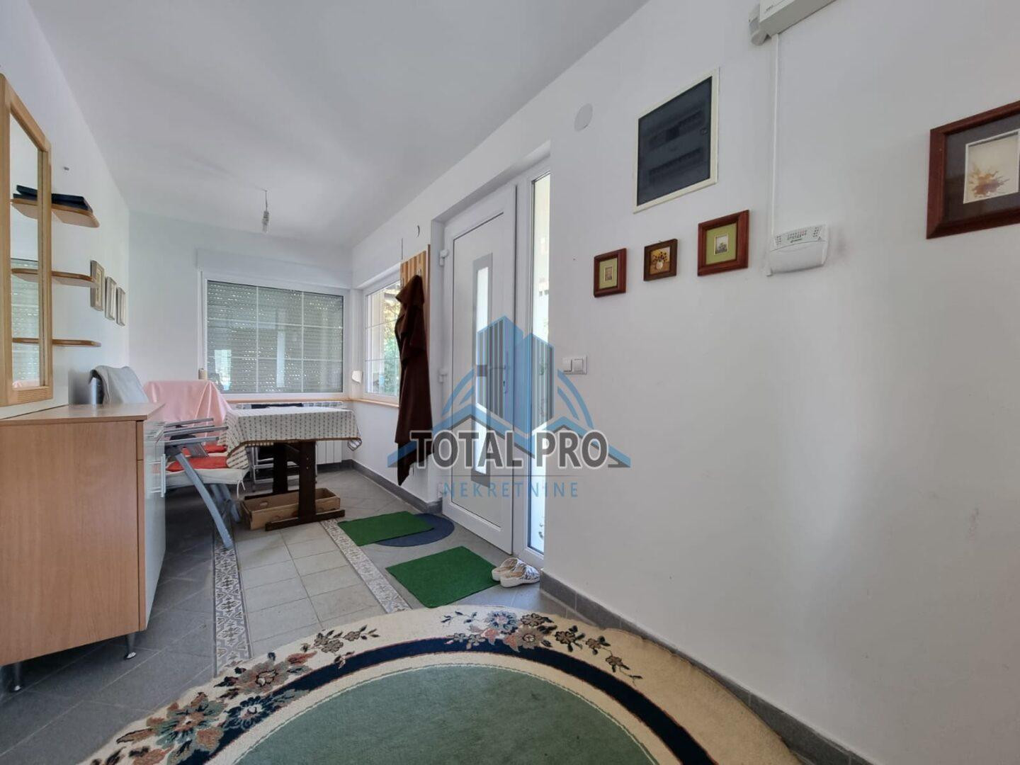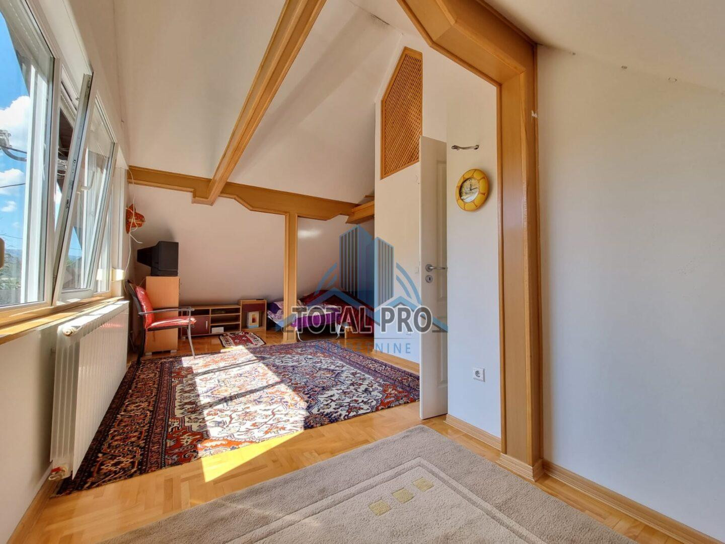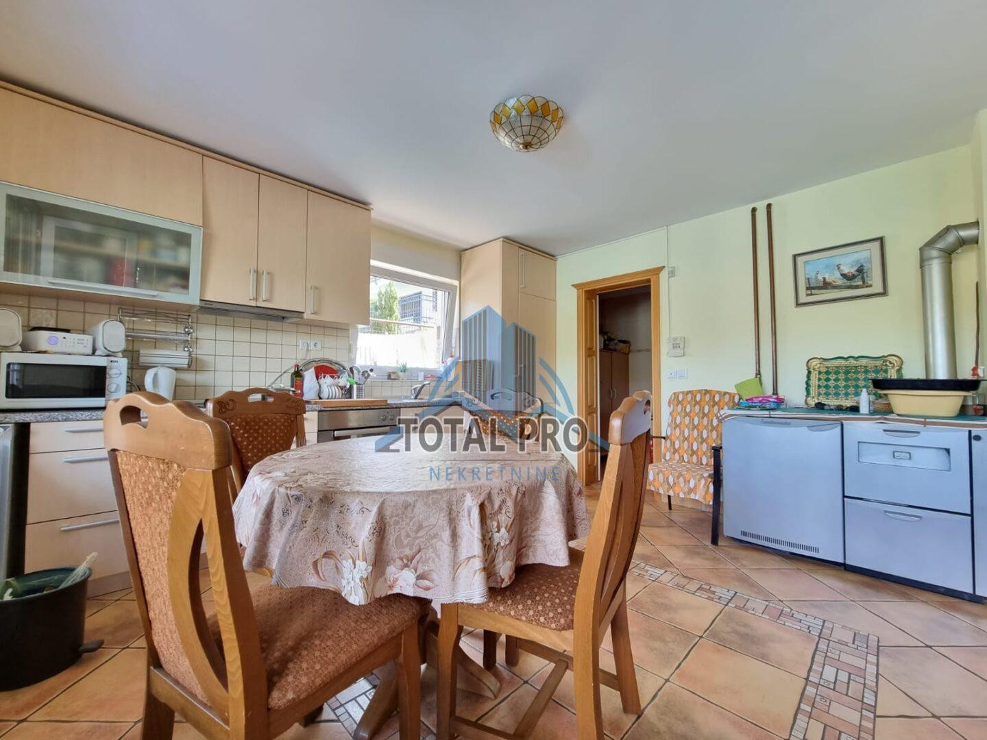 U prizemlju kuće nalazi se garaža sa rolo vratima, kao i veliki parking prostor za više vozila.