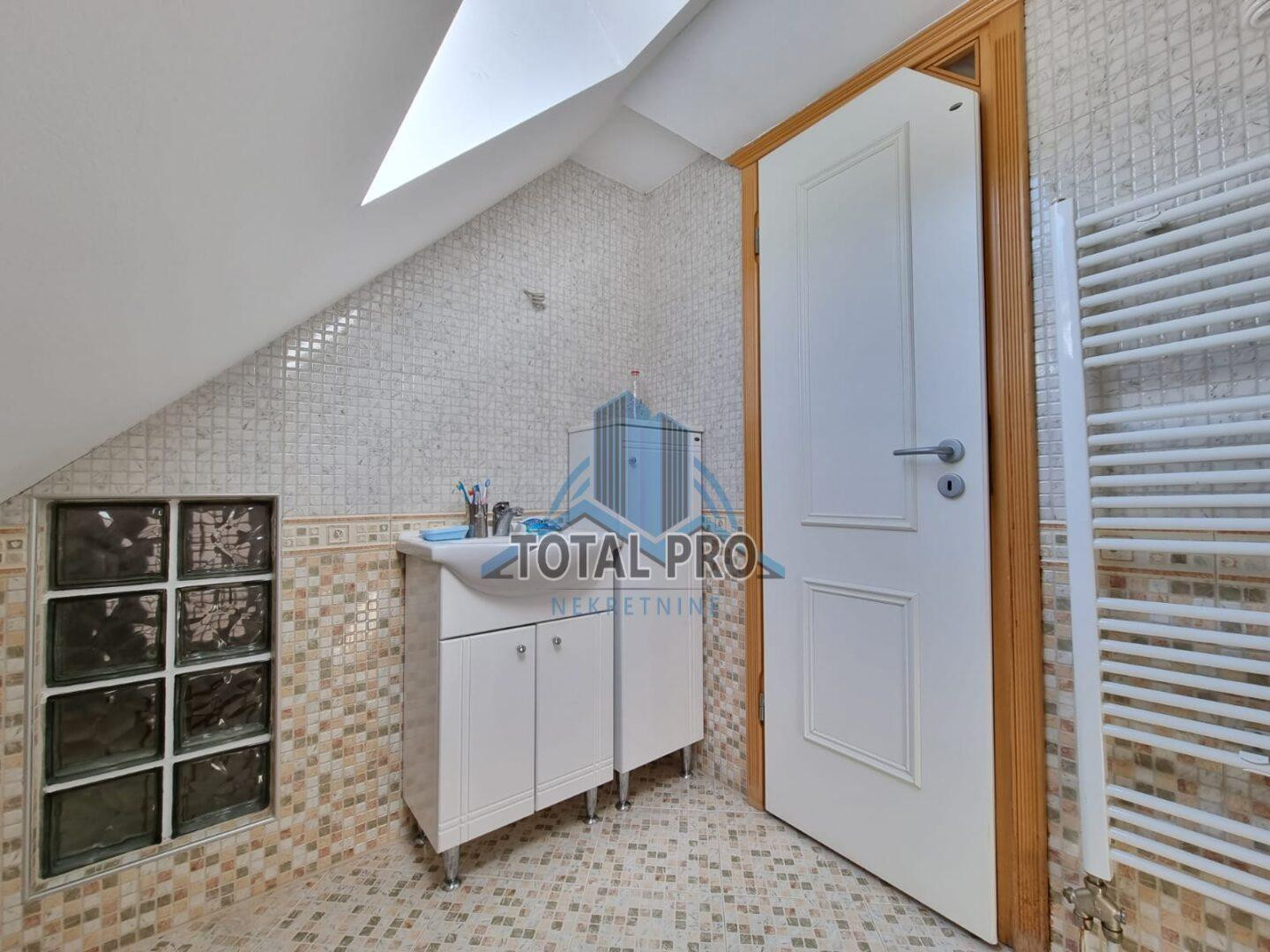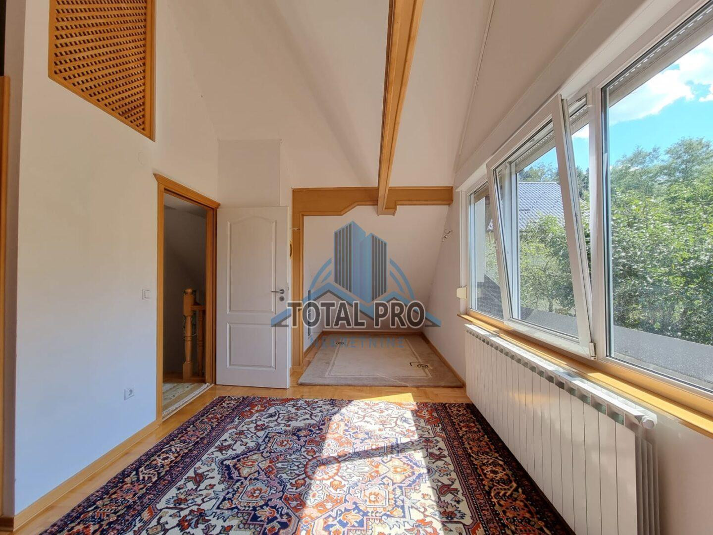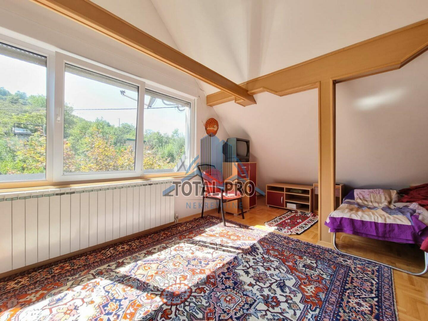 U prizemlju kuće nalazi se garaža sa rolo vratima, kao i veliki parking prostor za više vozila.