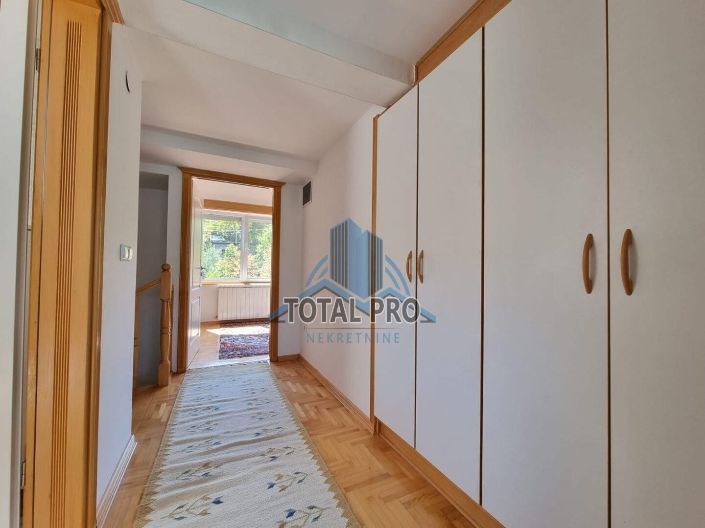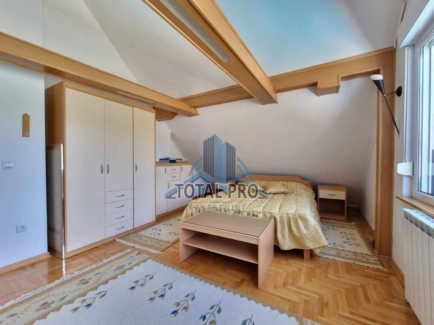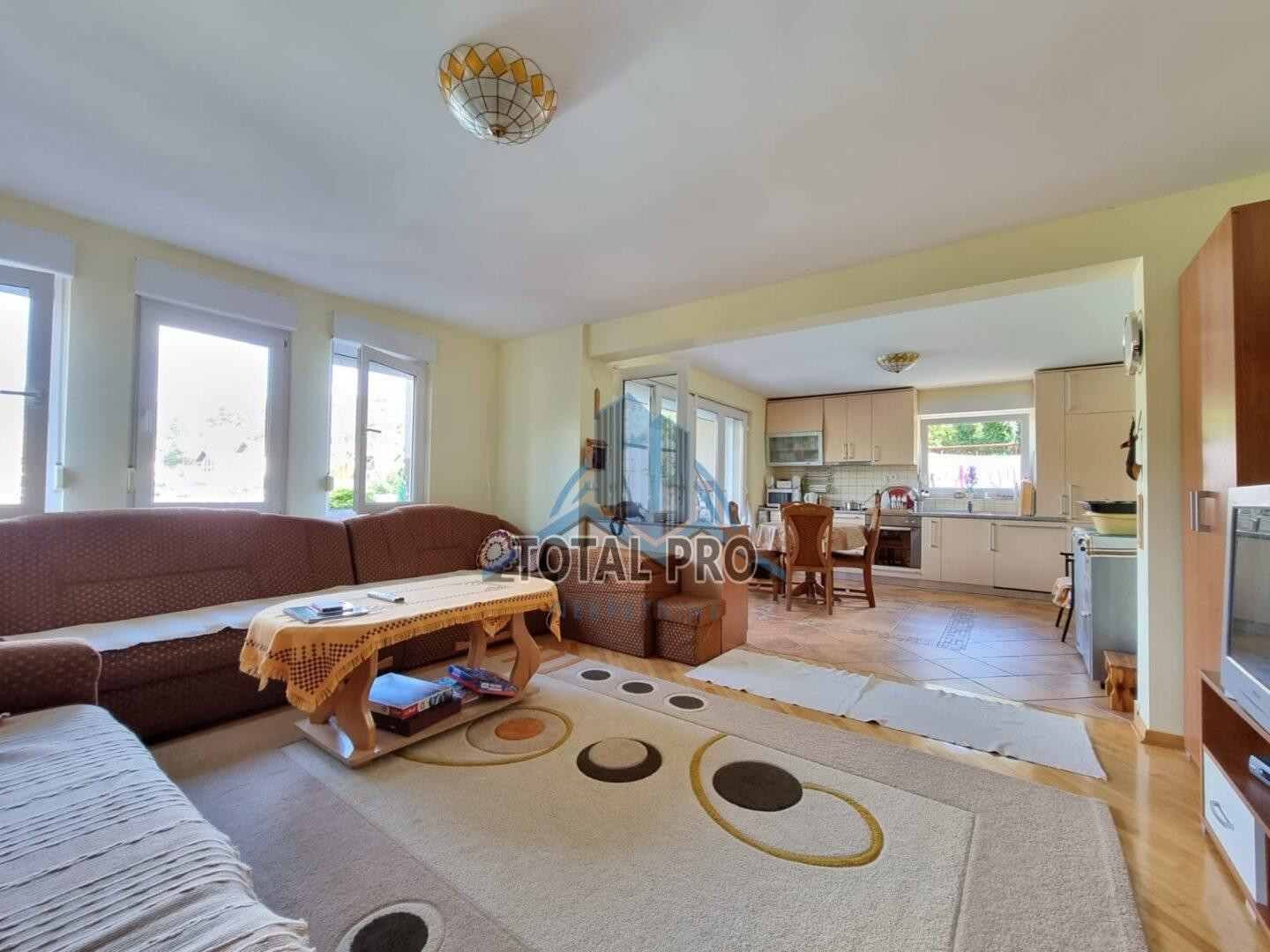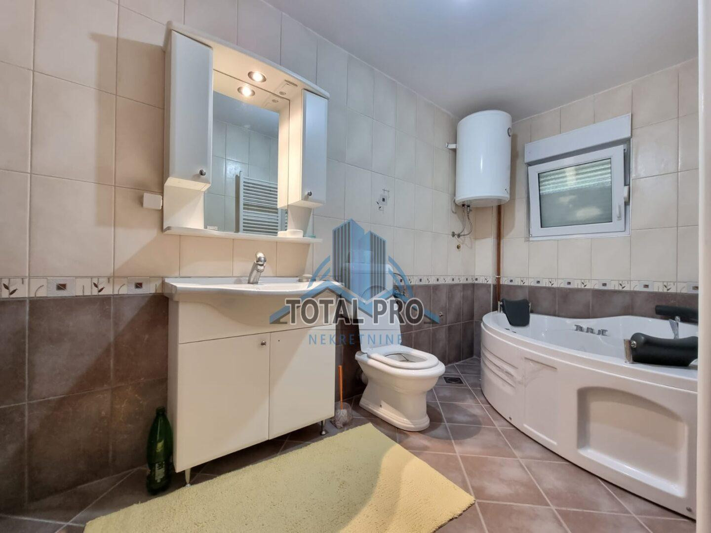 U prizemlju kuće nalazi se garaža sa rolo vratima, kao i veliki parking prostor za više vozila.