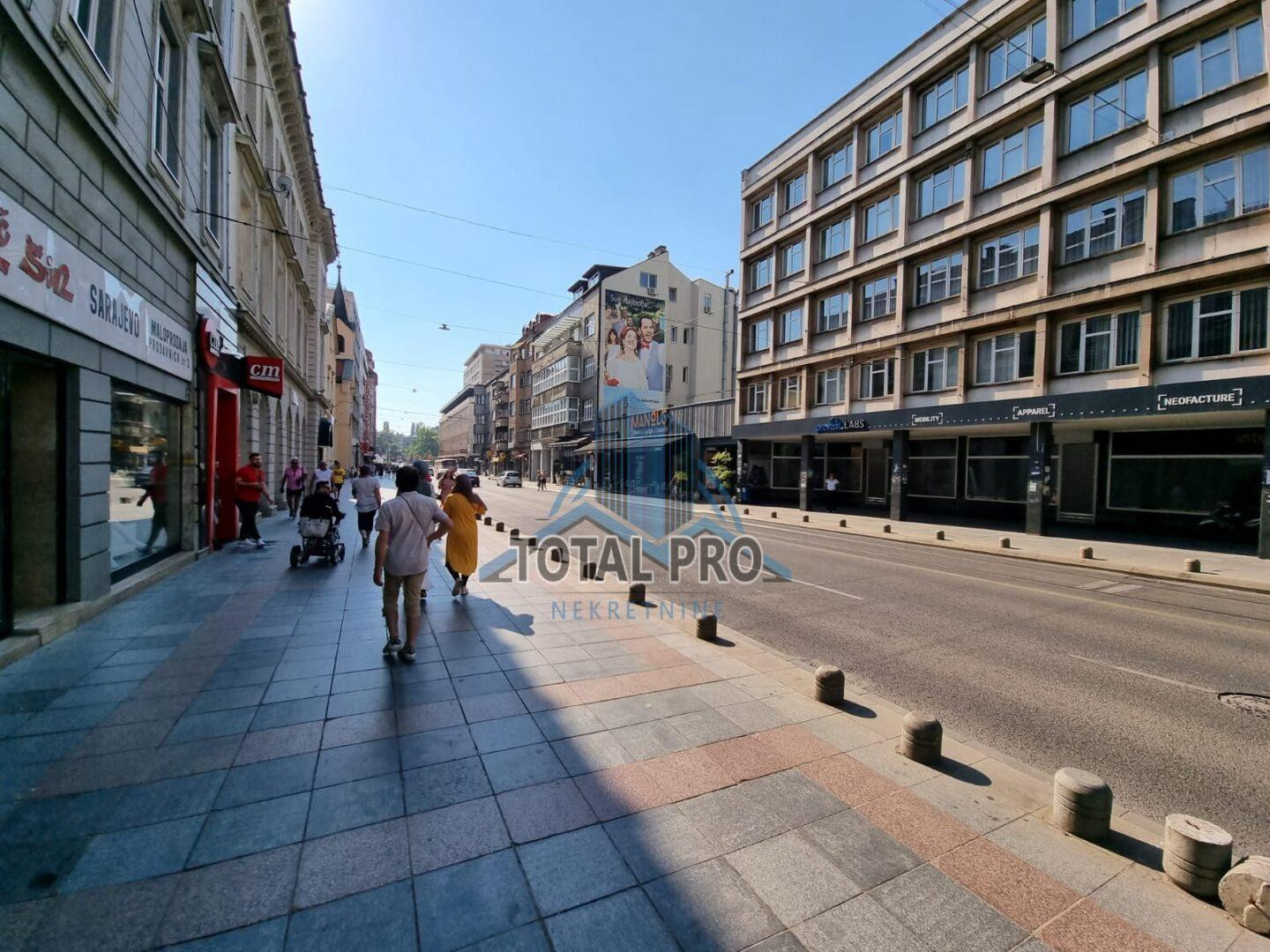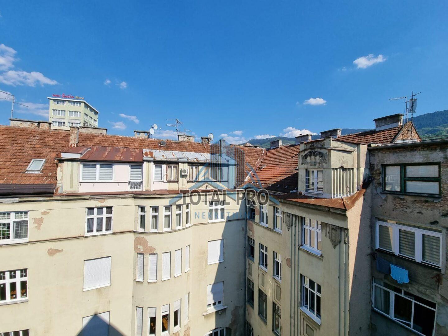Prodaje se dvostrano orjentisan četverosoban stan, uknjižene površine 90 m² (korisne površine 115 m2), pozicioniran na IV spratu u zgradi bez lifta, Austrougarske gradnje, u ulici Maršala Tita, općina Centar Sarajevo.