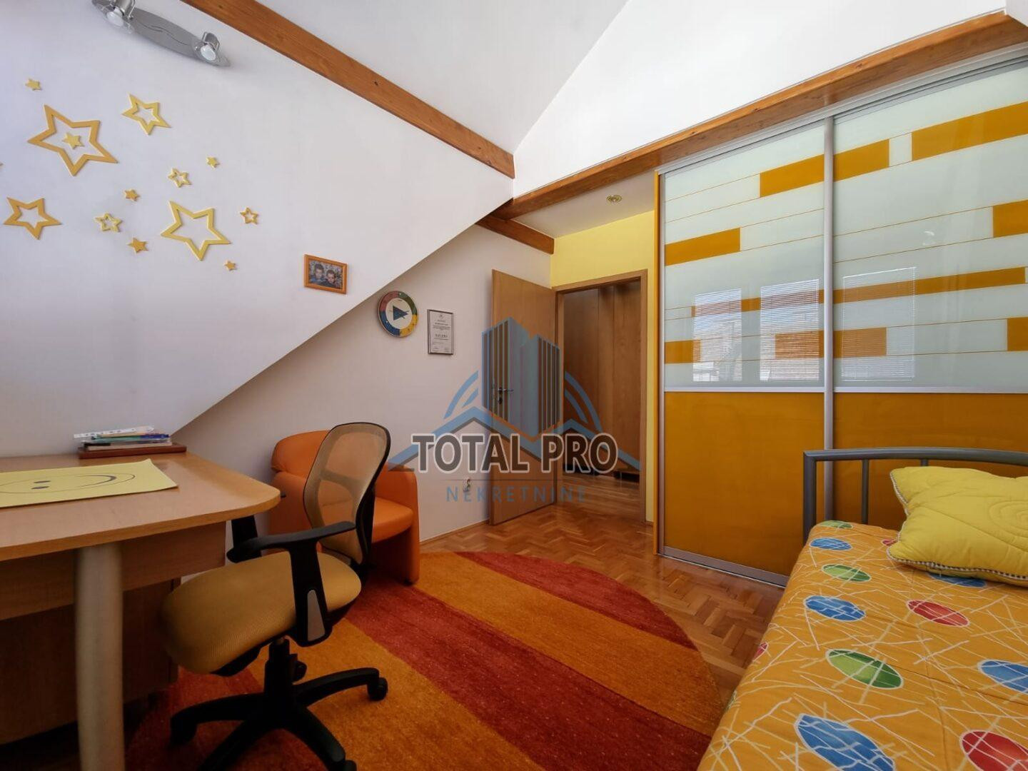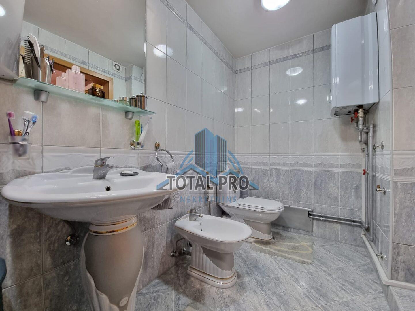 Ulaznog hodnika, dva kupatila, tri spavaće sobe, kuhinje, trpezarije i dnevnog boravaka sa francuskim balkonom.