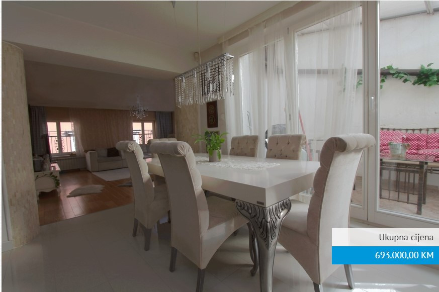 U Opštini Stari grad, prodaje se trosoban Penthouse sa uknjiženih 59,00 m2. Nalazi se na III spratu, koji je i posljedni, u objektu koji ne posjeduje lift. Objekat je Austrougarske gradnje, 2012 godine je pretvoren u luksuzni dvoetažni penthouse sa 138,41 m2 korisne površine.