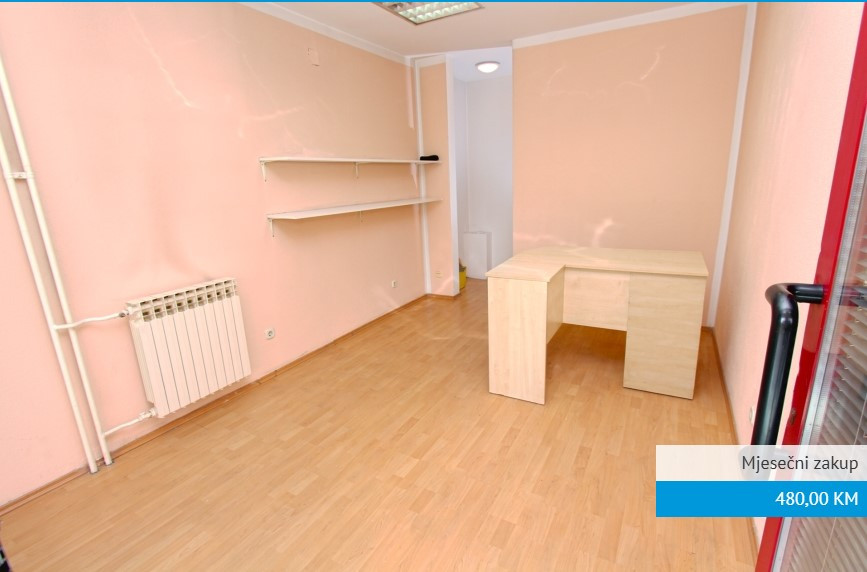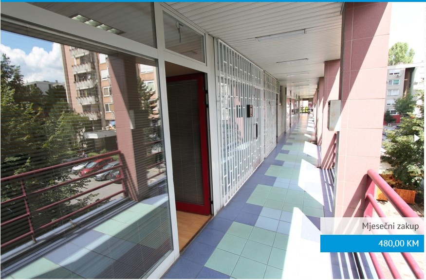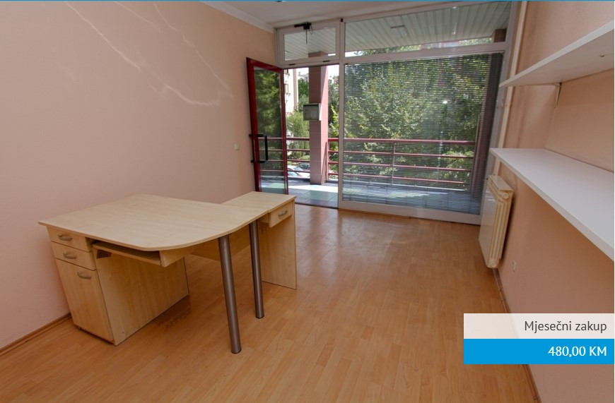 U Opštini Novo Sarajevo iznajmljuje se poslovni prostor sa uknjiženih 16 m2. Nalazi se na I katu poslovnog objekta. Objekat nema lift te posjeduje vanjsko stepenište s obje strane. Sadrži radnu prostoriju te toalet, ispred je natkriveni balkon/predulaz.