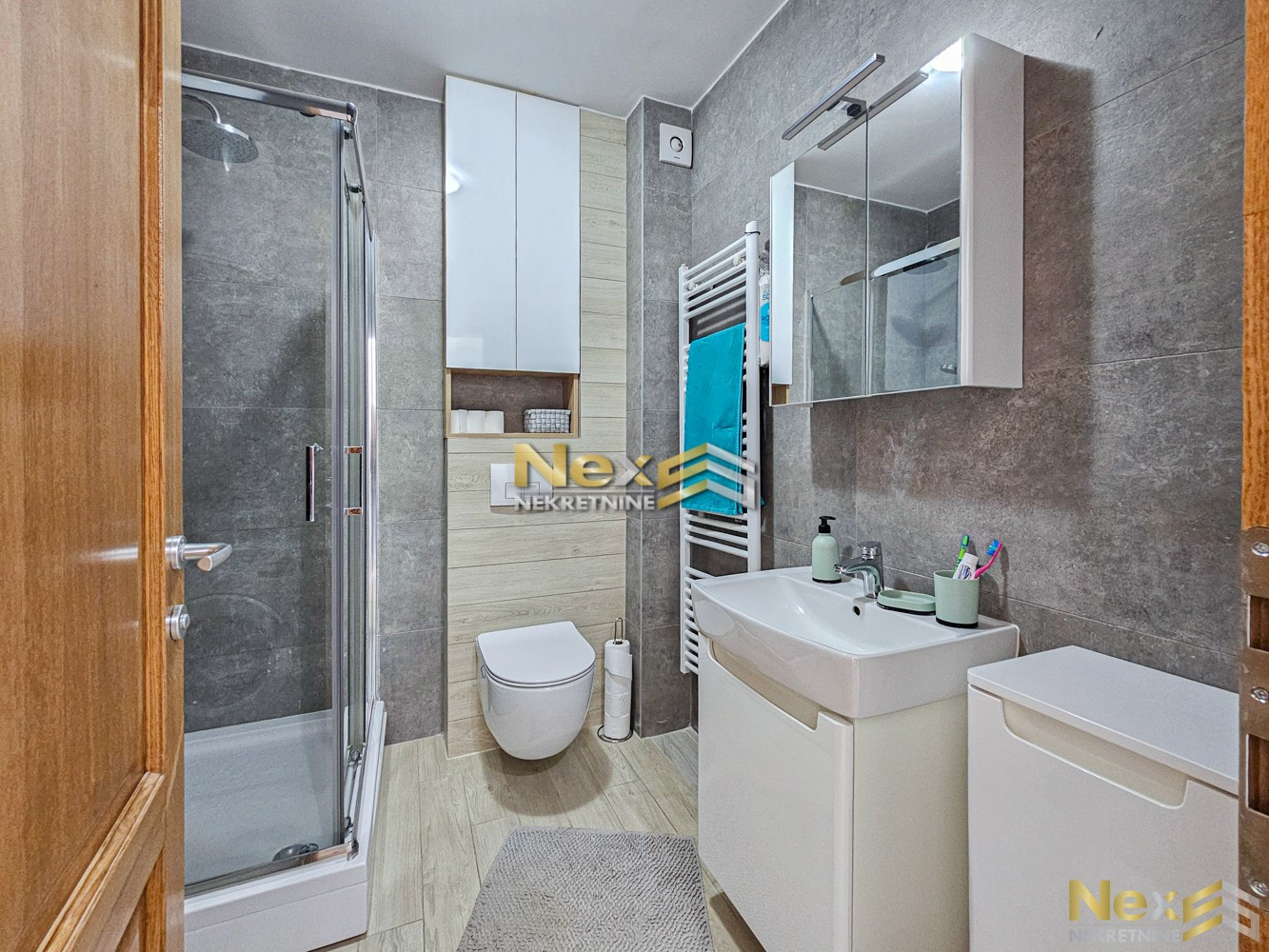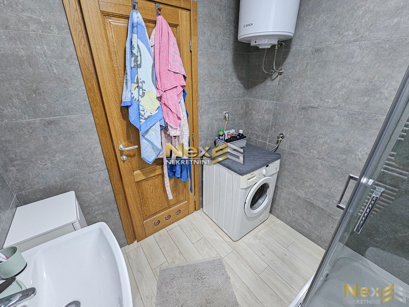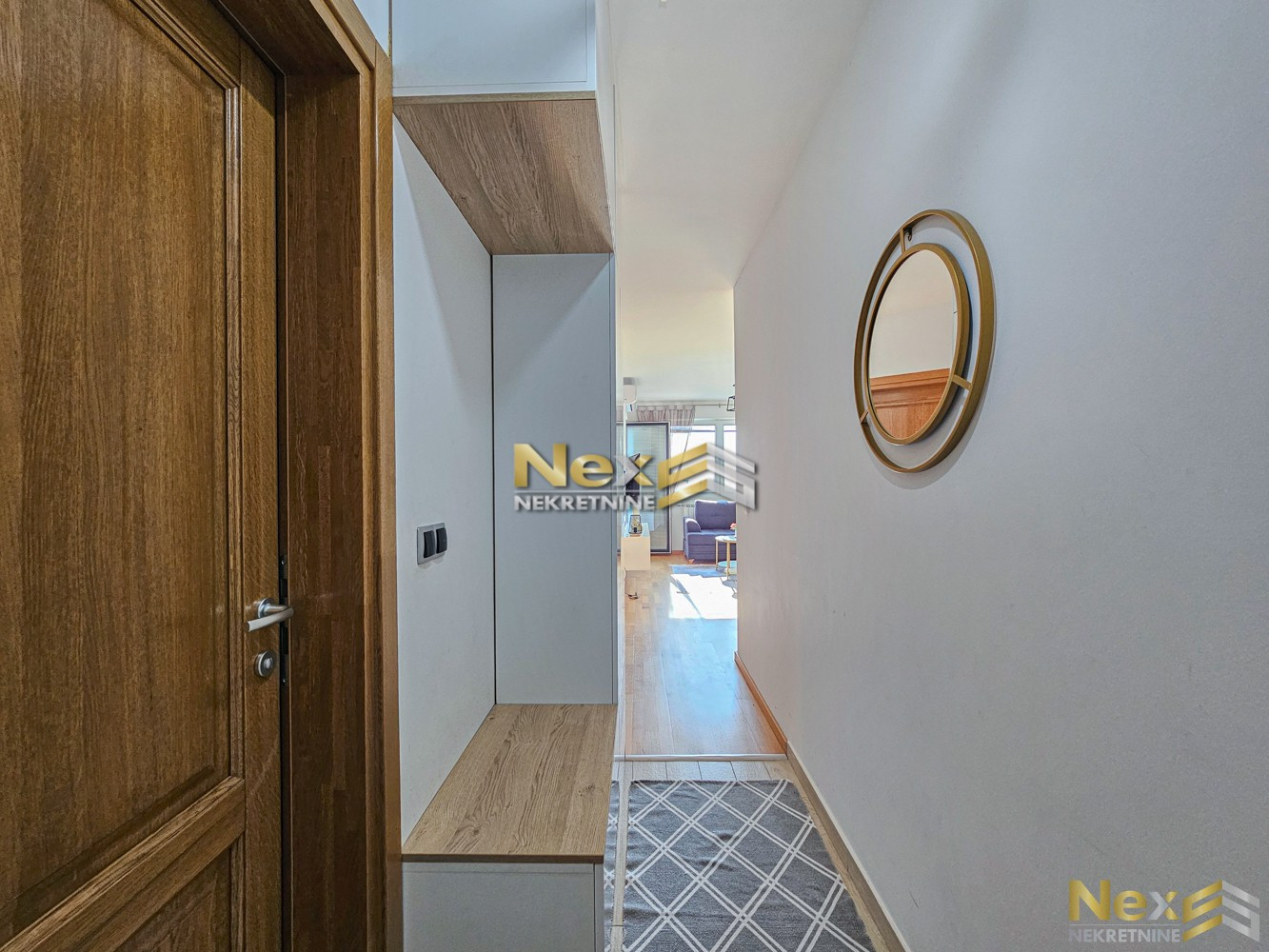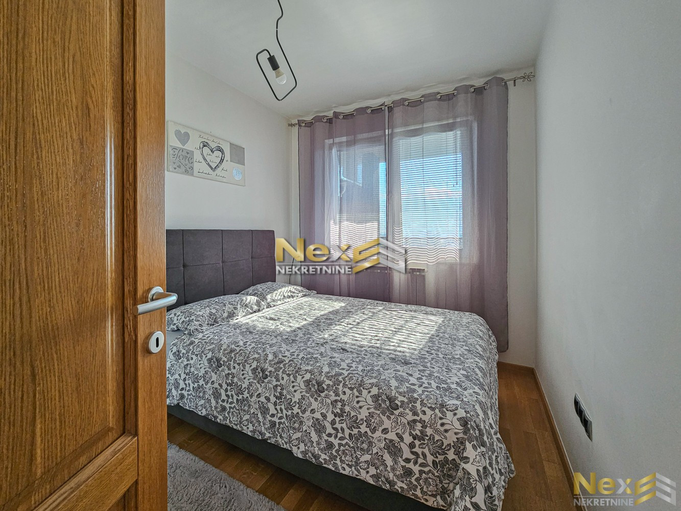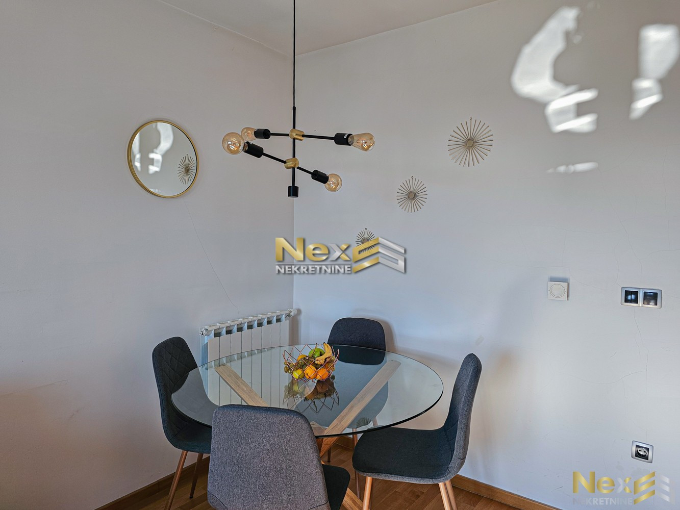 Na podovima u dnevnom boravku i spavaćoj sobi postavljen je parket, dok su u kupatilu, kuhinji i predulazu postavljene keramičke pločice. Vanjska stolarija je PVC, a unutrašnja stolarija je drvena. Blindirana vrata. Klima uređaj. Grijanje centralno (kotlovnica) sa kalometrom.