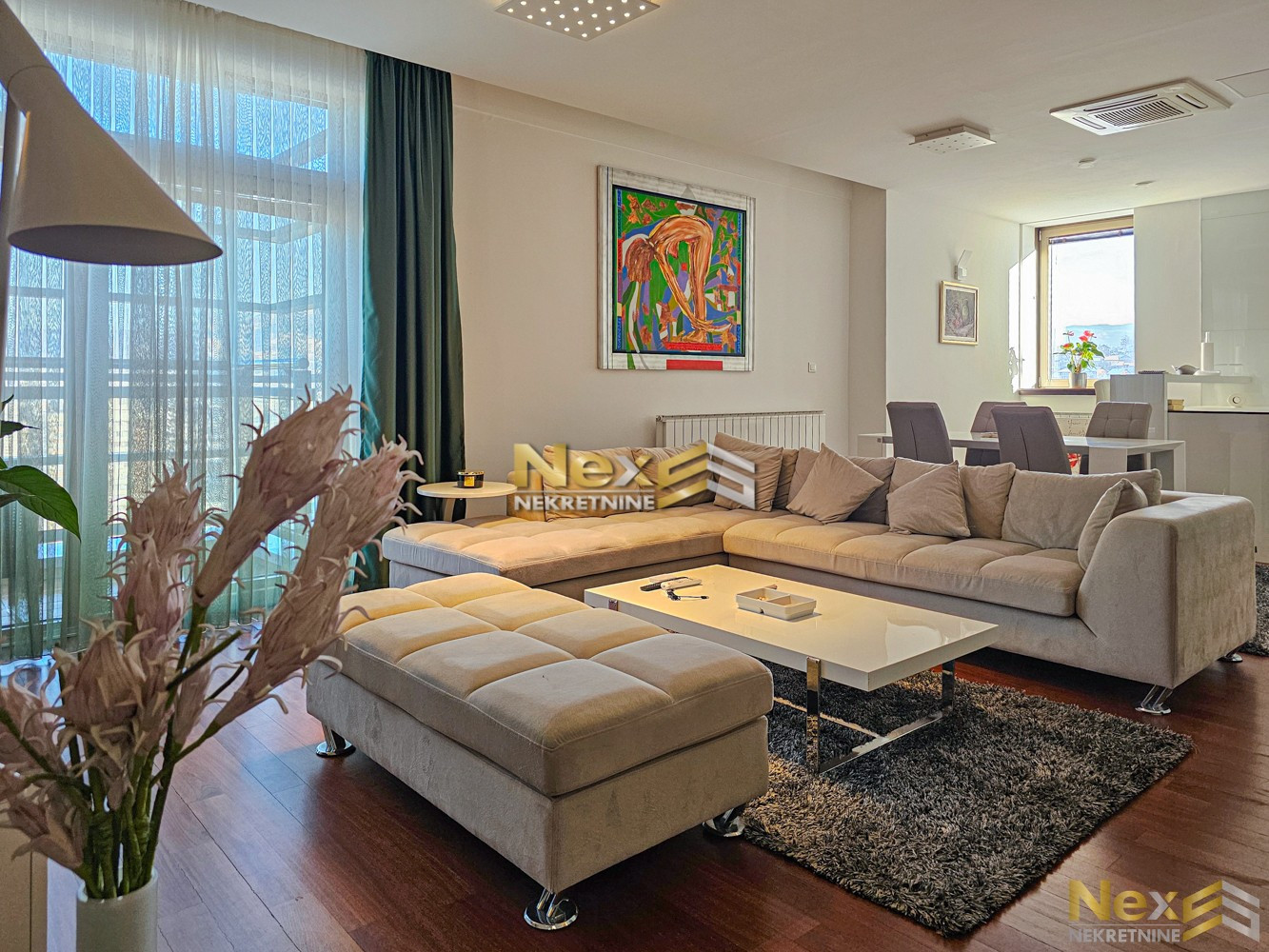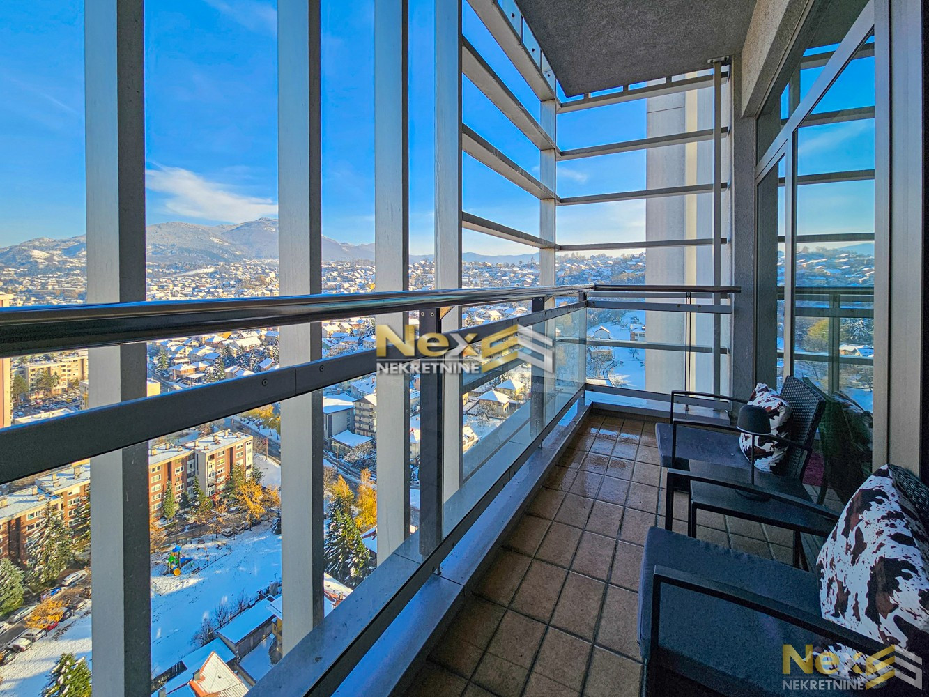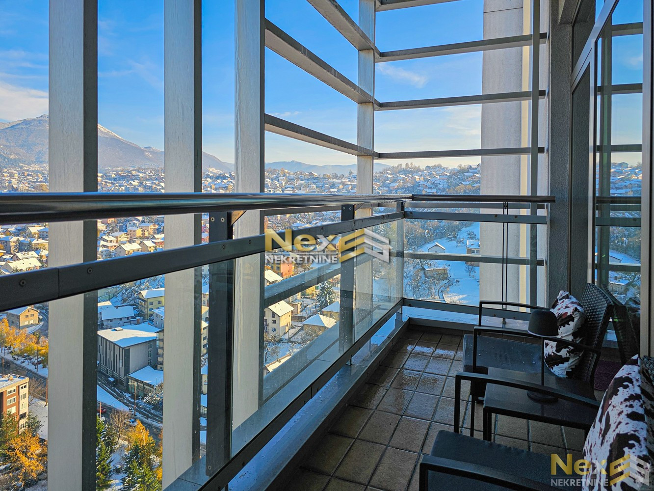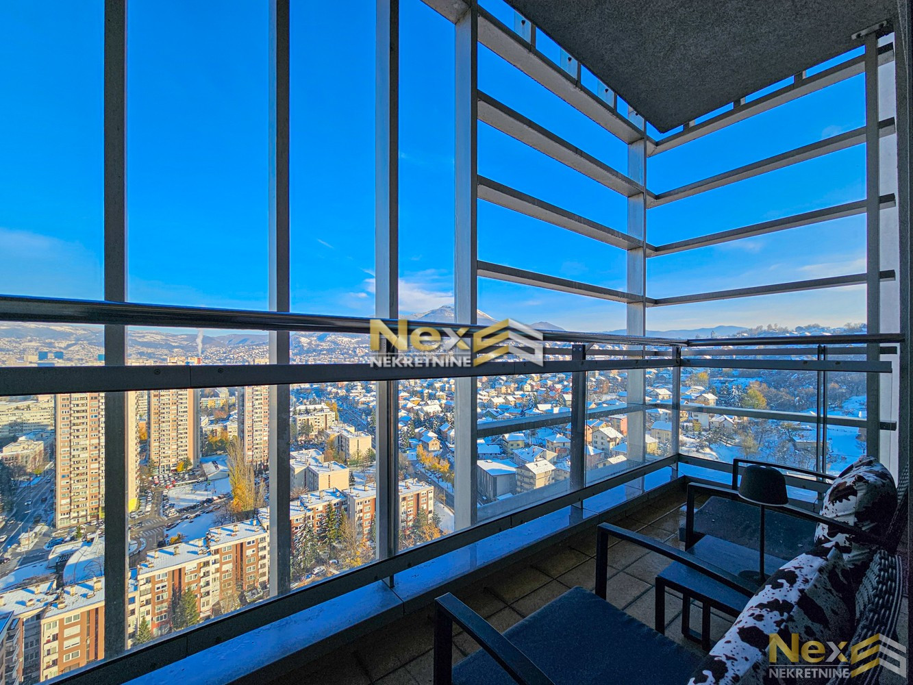 Iznajmljujemo kompletno namješten, trosoban stan površine 100 m2, pozicioniran na petnaestom spratu prestižnog Bosmal City Centra.