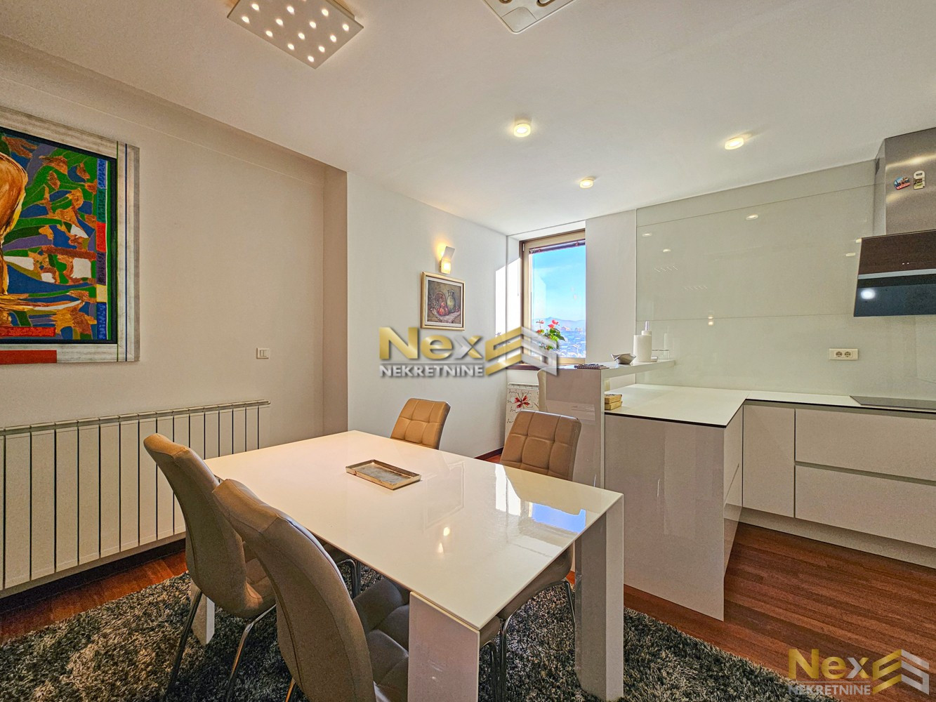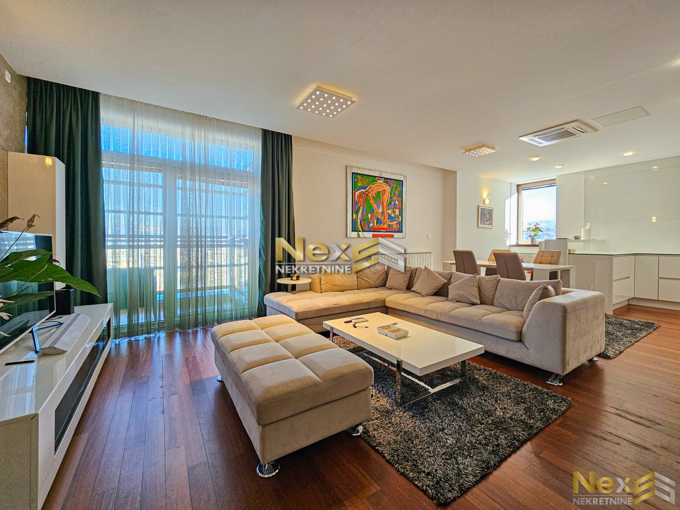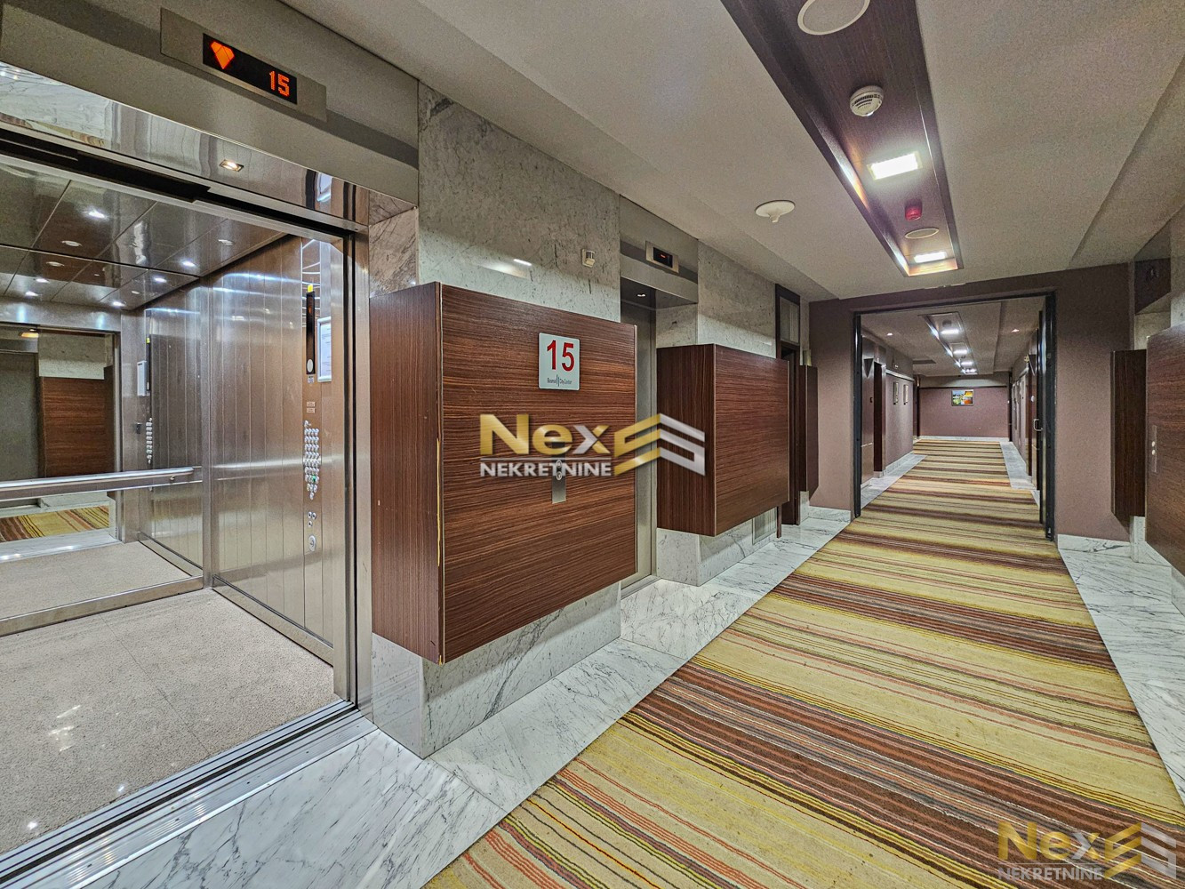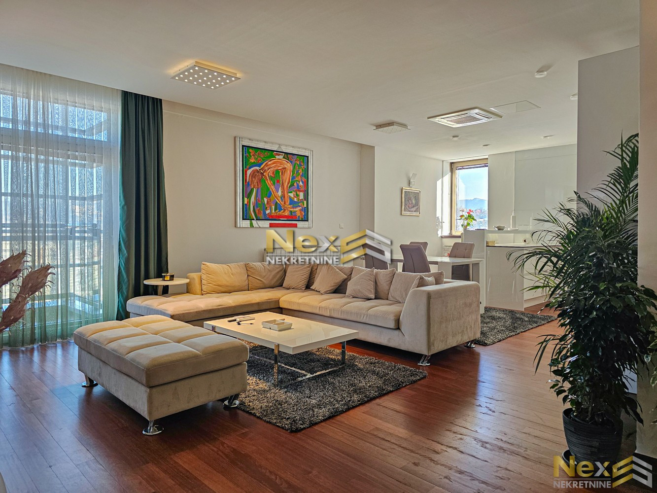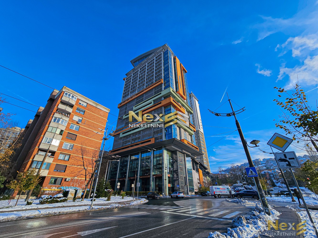 Iznajmljujemo kompletno namješten, trosoban stan površine 100 m2, pozicioniran na petnaestom spratu prestižnog Bosmal City Centra.