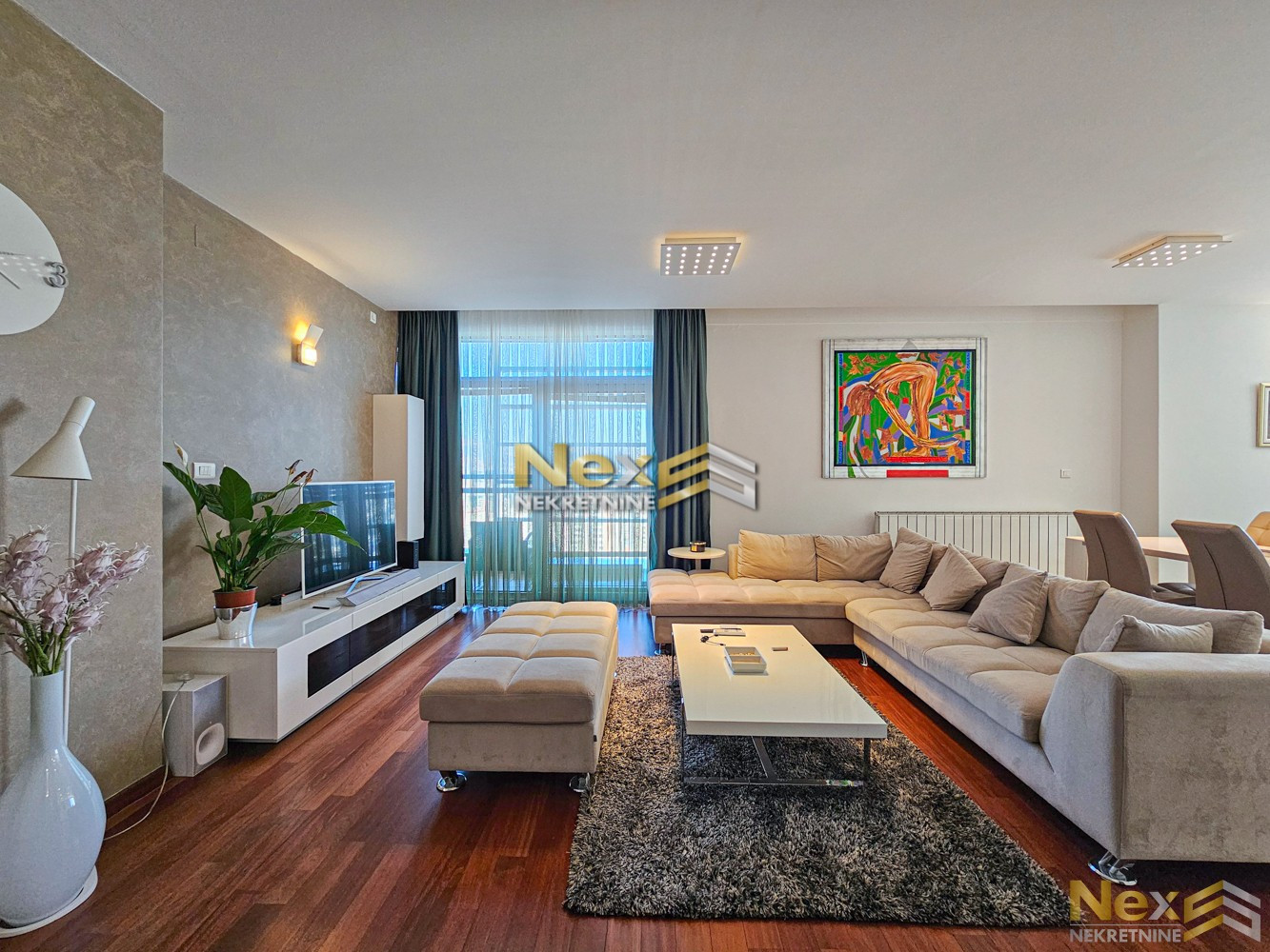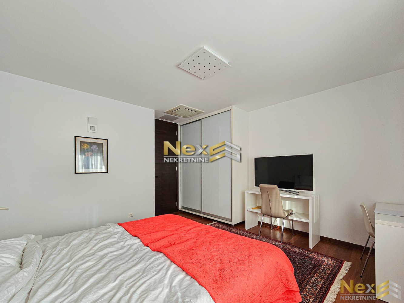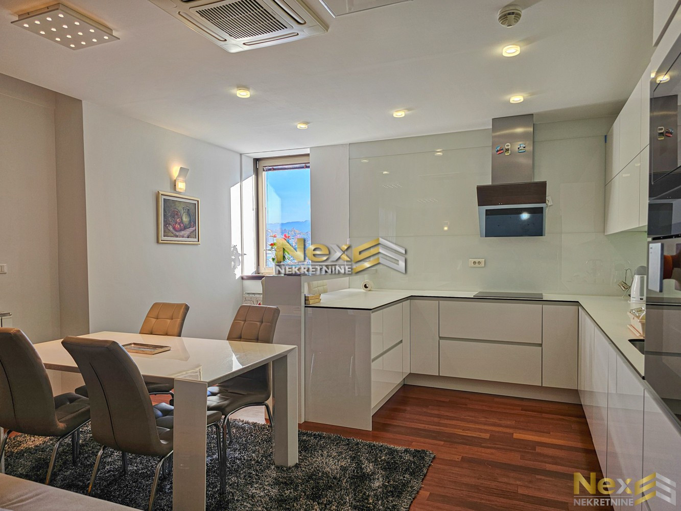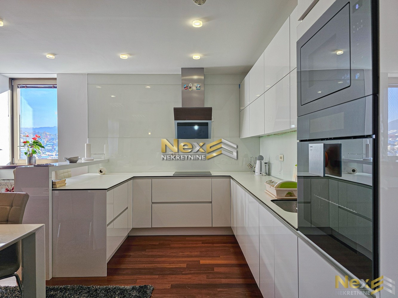 Iznajmljujemo kompletno namješten, trosoban stan površine 100 m2, pozicioniran na petnaestom spratu prestižnog Bosmal City Centra.